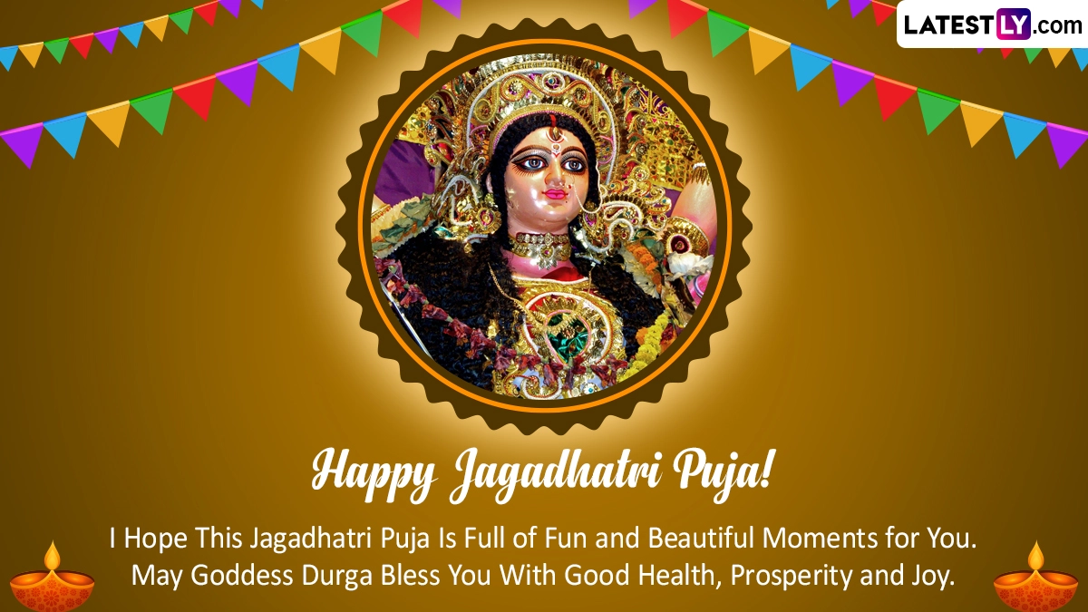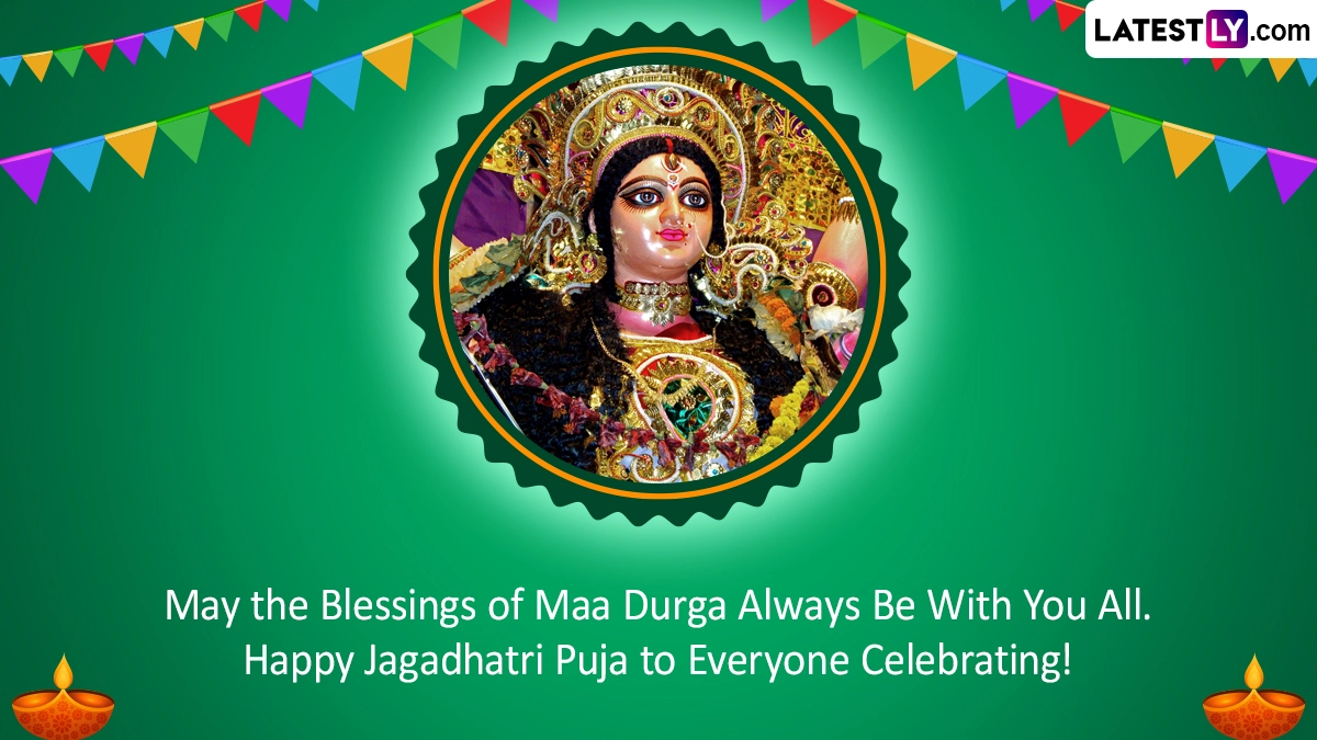 The origins of Jagaddhatri Puja date back to the 18th century, attributed to Maharaja Krishnachandra of Krishnanagar, who initiated the puja after missing the traditional Durga Puja celebrations. Today, Jagaddhatri Puja has become a community celebration marked by elaborate processions, striking light displays, and ornate idols of the goddess. This event is particularly renowned for the artistic pandals and the electric light displays in Chandannagar, where the celebration echoes both local devotion and a shared cultural heritage. As you observe Jagaddhatri Puja 2024, share these Jagaddhatri Puja 2024 wishes, images, HD wallpapers, Happy Jagaddhatri Puja greetings, Maa Jagaddhatri photos and messages. November 2024 Festivals, Events and Holidays Calendar: Complete List of Important National and International Days and Dates.