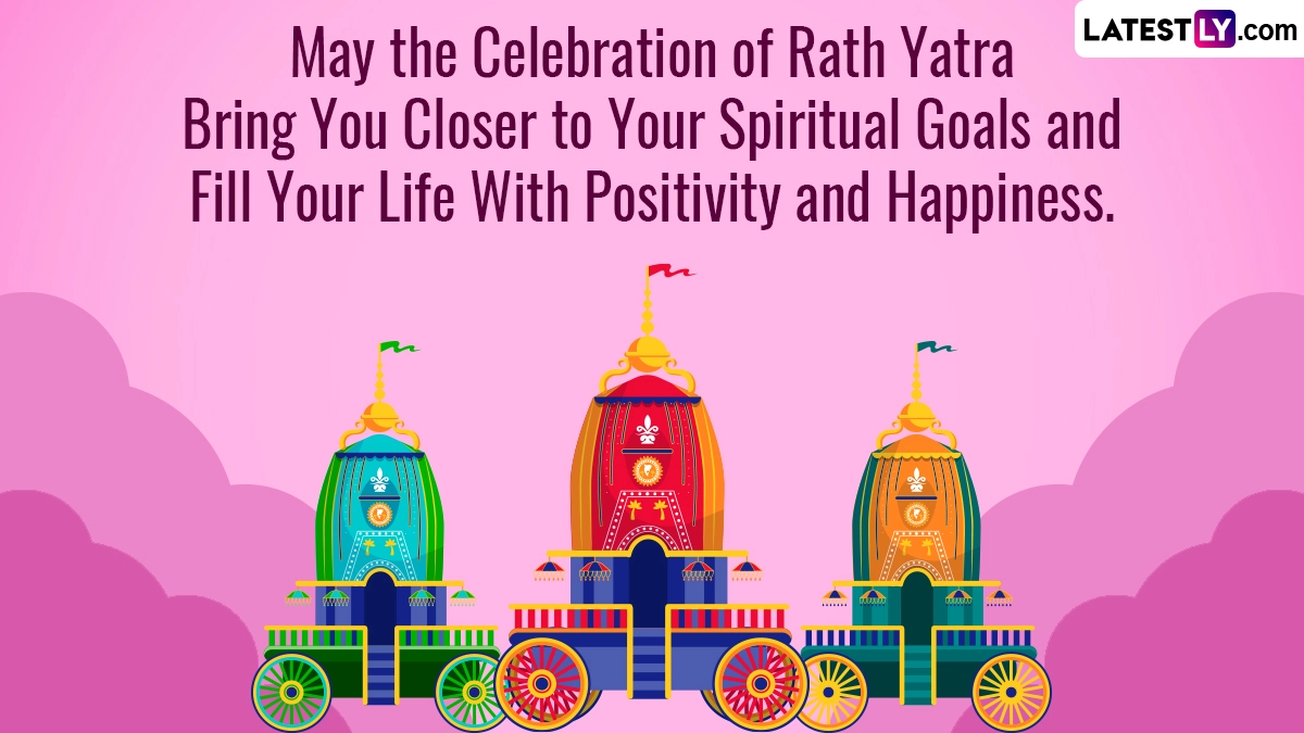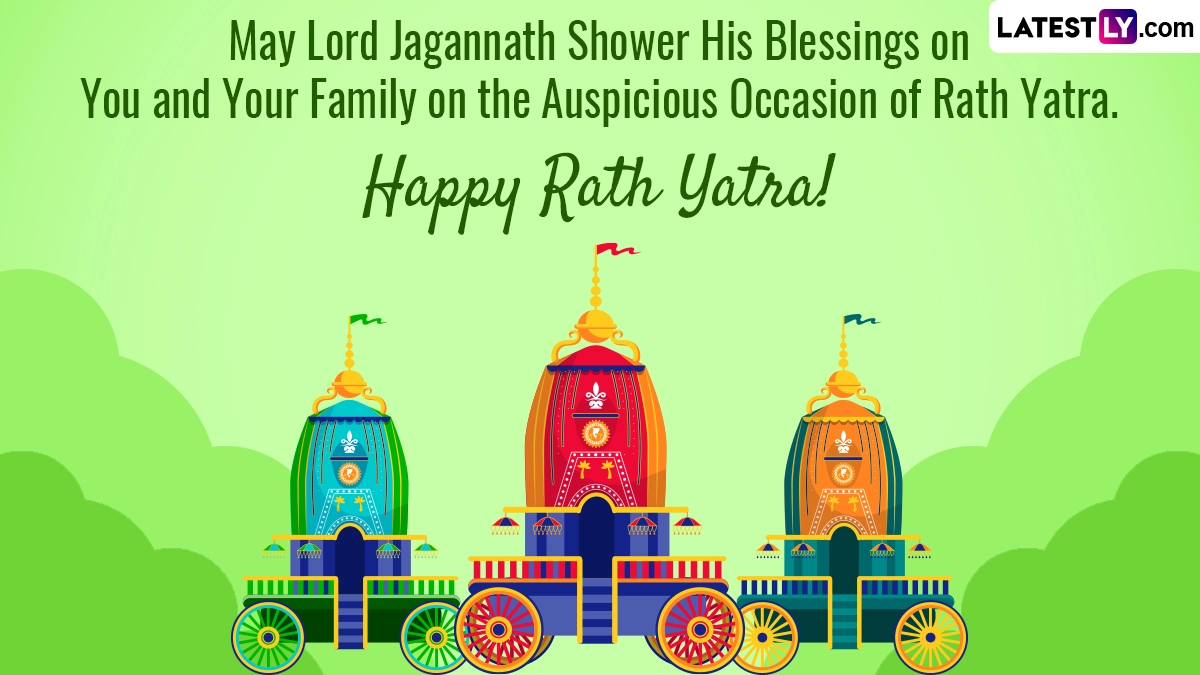 The Ratha Yatra commemorates Lord Jagannath's annual visit to the Gundicha Mata Temple. This tradition honours Queen Gundicha, the wife of King Indradyumna, who built the Puri Jagannath Temple. Eighteen days before the Ratha Yatra, Lord Jagannath, Balabhadra, and Subhadra undergo a ceremonial bath known as the Snana Yatra. To celebrate Jagannath Rath Yatra 2024, we have created a list of Rath Yatra 2024 wishes, messages, Jagannath Rath Yatra greetings, HD images and wallpapers for you to share with your family and friends on this auspicious day of Rath Jatra 2024.