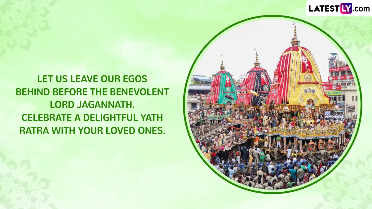 JagannathĀ Ratha Yatra, also known as the Chariot Festival, is a grand annual procession held in Puri, Odisha, and dedicated to Lord Jagannath, a form of Lord Krishna. Celebrated on the Dwitiya Tithi of Shukla Paksha in the month of Ashadha (June-July), it marks the only time in the year when the deities, Lord Jagannath, his brother Balabhadra, and sister Subhadra emerge from their temple to bless devotees in a massive public celebration. Jagannath Rath Yatra 2025 starts on June 27. The trio is placed on elaborately decorated chariots and pulled by thousands of devotees to Gundicha Temple, about 3 km away, where they stay for nine days before returning to the Jagannath Temple. To celebrateĀ Jagannath Rath Yatra 2025, share theseĀ Jagannath Rath Yatra 2025 wishes, WhatsApp messages, quotes, greetings, HD images and wallpapers ofĀ Lord Jagannath, Lord Balabhadra and Devi Subhadra.