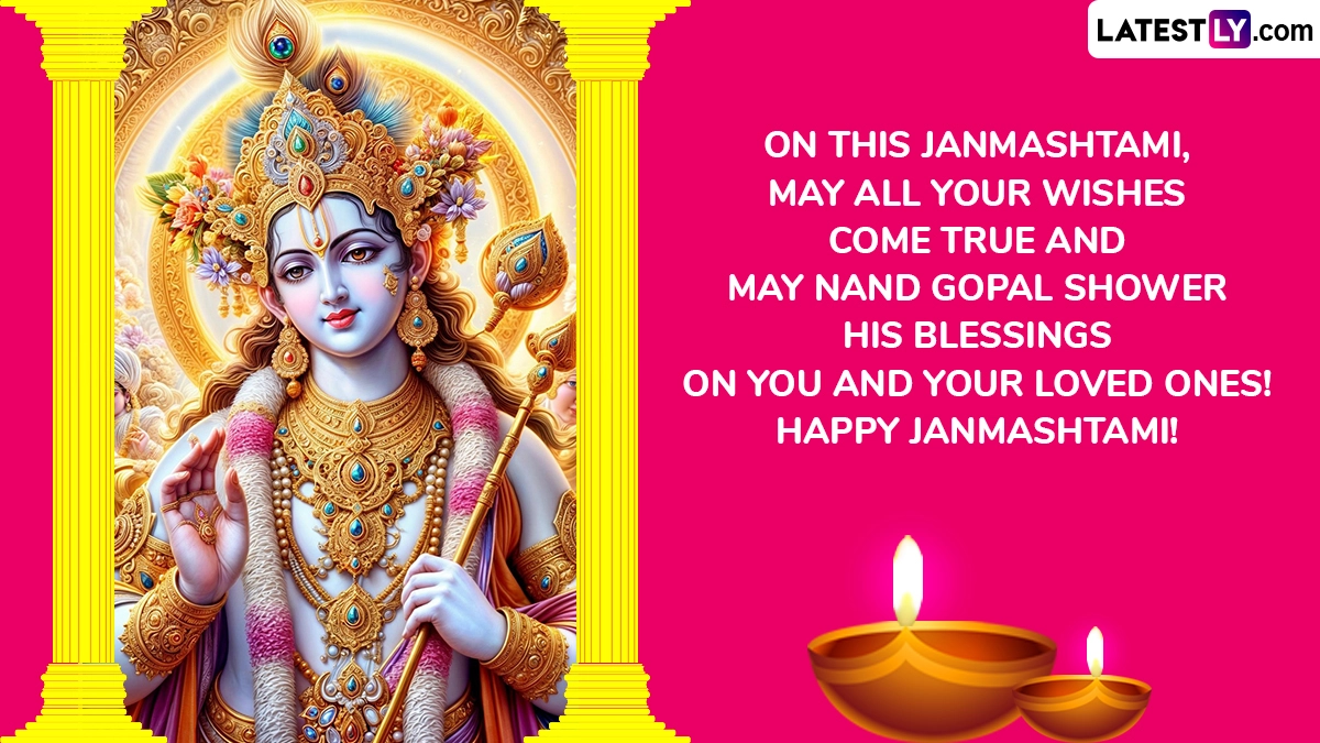 Krishna Janmashtami, also known as Gokulashtami, marks the birth of Lord Krishna, the eighth incarnation of Lord Vishnu. It is celebrated on the eighth day (Ashtami) of the Krishna Paksha in the month of Bhadrapada, usually in August or September. Janmashtami 2025 falls on August 16. Devotees observe the day with fasting, devotional singing, and enactments of Krishna’s childhood, such as Raslila and Dahi Handi. Temples and homes are beautifully decorated with flowers, lights and idols of baby Krishna placed in cradles. To celebrate the auspicious festival of Gokulashtami 2025, share these Janmashtami 2025 wishes, Bal Gopal Krishna photos, Instagram captions, messages, Dahi Handi greetings, quotes, HD images and wallpapers with your friends and family.