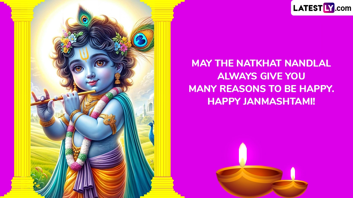 The significance of Janmashtami lies in its celebration of divine love, righteousness, and the victory of good over evil. Lord Krishna’s life and teachings, as described in the Bhagavad Gita, emphasise the importance of dharma (duty), devotion, and selfless action. His playful childhood stories symbolise joy, innocence, and the bond between the divine and devotees. The breaking of the Dahi Handi pot represents Krishna’s mischievous yet symbolic act of overcoming obstacles to attain joy. On Janmashtami 2025, share these Janmashtami 2025 wishes, Bal Gopal Krishna photos, Instagram captions, messages, Dahi Handi greetings, quotes, HD images and wallpapers. When Is Dahi Handi 2025? Know Date, Important Rituals, History and Significance To Celebrate Gopalakala Festival That Re-Enacts Lord Krishna’s Playful Acts As ‘Makhan Chor’.