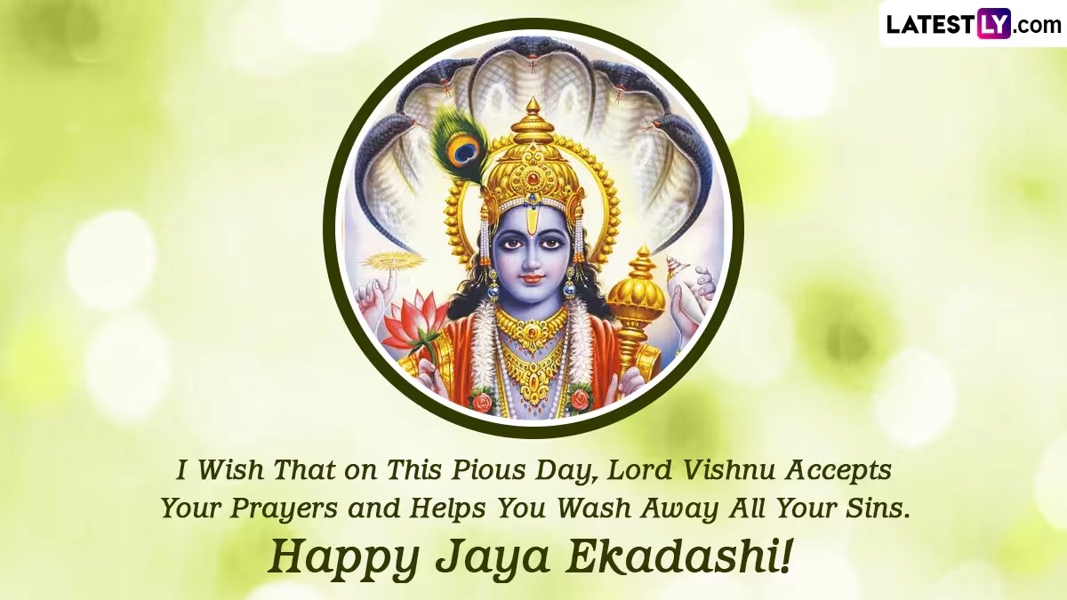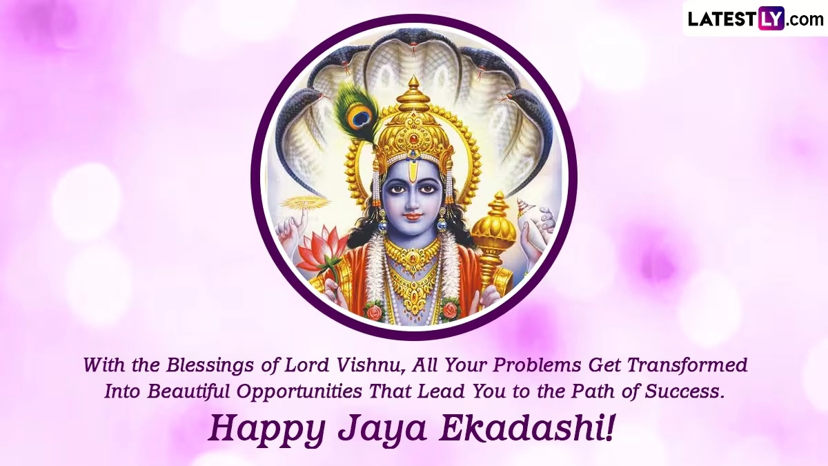Jaya Ekadashi, also known as Bhaimi Ekadashi or Bhishma Ekadashi, is an important Hindu fasting day observed on the eleventh day (Ekadashi) of the Shukla Paksha (waxing phase of the moon) in the month of Magha. Jaya Ekadashi 2025 falls on Friday, February 7. This auspicious day is dedicated to Lord Vishnu and is believed to bring spiritual purification, absolving devotees of sins and granting them divine blessings. Fasting on this day is said to free individuals from past karmic cycles and lead them toward moksha (liberation). To celebrate Jaya Ekadashi 2025, we bring you Jaya Ekadashi 2025 wishes, greetings, messages, Lord Vishnu images, quotes and wallpapers to observe the auspicious Bhishma Ekadashi. Hindu Festivals Calendar 2025: Know Dates of Holi, Chaitra Navratri, Durga Puja, Ganesh Chaturthi, Diwali and Other Major Festivals in India.