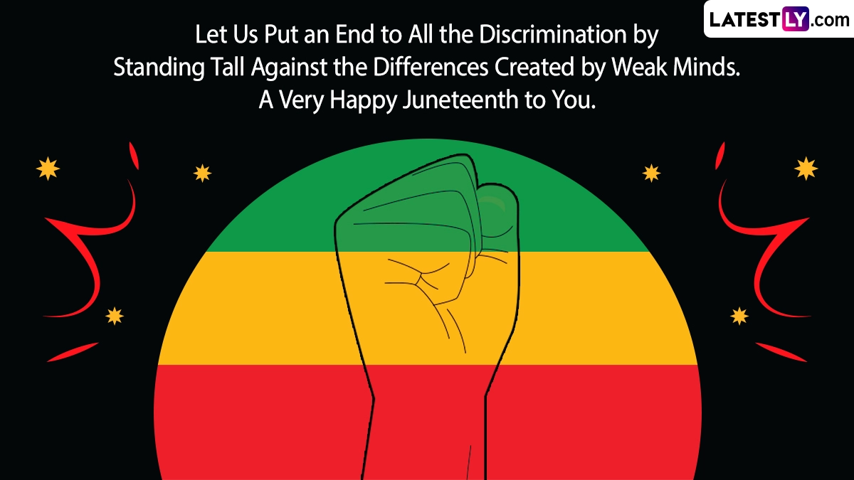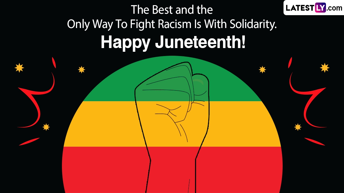 Juneteenth is a very important part of US history. This year, Juneteenth 2024 will be celebrated on June 19, 2024, a Wednesday. If you are looking for ways to get started and begin the celebrations, look no further. We have curated a list of Juneteenth 2024 wishes, Juneteenth 2024 slogans, Juneteenth greetings, Juneteenth 2024 images, Juneteenth 2024 WhatsApp status and stickers, Juneteenth 2024 wallpapers, and Juneteenth 2024 quotes that you can share with your family, friends, and all your near and dear ones. Juneteenth 2024 Travel Guide: 7 Places To Visit To Celebrate and Experience the True Spirit of the US Federal Holiday.