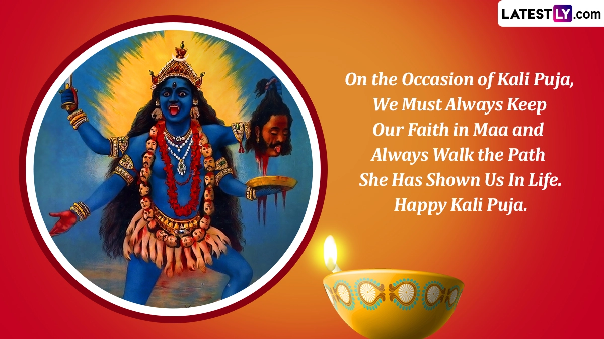 Kali Puja honours Goddess Kali, the fierce avatar of Goddess Durga, who represents the destruction of evil forces and the protection of her devotees. Worshippers pray for her blessings to overcome obstacles, eradicate negativity, and bring peace and prosperity to their lives. The festival often involves night-long vigils, offerings of sweets and flowers, and special rituals at temples or home altars. To celebrate the auspicious occasion, share Kali Puja 2024 wishes, greetings, quotes, Maa Kali HD images, and wallpapers with family and friends. Kali Puja: Devotional Songs, Famous Bhajans of Kali Mata and Kali Maa Ki Aarti That You Can Easily Sing (Watch Videos).