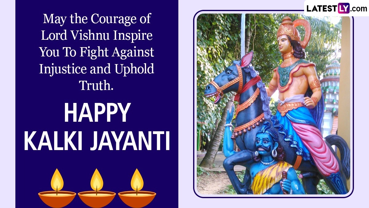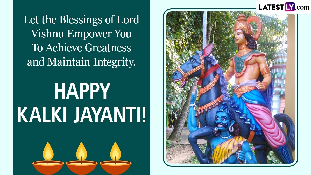 The celebration of Kalki Jayanti includes various rituals and religious activities that focus on invoking the blessings of Lord Vishnu in his Kalki form. Temples dedicated to Vishnu may hold special ceremonies, including recitations of sacred texts and hymns that describe the virtues and anticipated deeds of Kalki. Devotees engage in prayers, fasting, and spiritual practices to honour the prophesied future avatar and seek divine guidance and protection. The festival often features community gatherings where people discuss and reflect on the themes of justice, righteousness, and the cyclical nature of time. Download these Kalki Jayanti 2024 HD images and wallpapers to celebrate the day. These Kalki Jayanti 2024 wishes, WhatsApp messages and greetings are perfect to share and invoke the blessings of Lord Vishnu in his Kalki form.