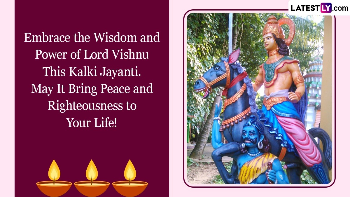 Kalki Jayanti 2024 falls on Saturday, August 10. It is a significant Hindu festival dedicated to celebrating and honouring Kalki, the future avatar of Lord Vishnu. According to Hindu beliefs, Kalki is foretold to appear at the end of the current age, Kali Yuga, to restore cosmic order and righteousness. This festival is an occasion for devotees to reflect on the promises of divine intervention and the eventual triumph of good over evil. The observance of Kalki Jayanti aligns with the belief that this period marks the approach of Kalki's anticipated arrival. On Kaki Jayanti, devotees often share Lord Vishnu HD images, devotional messages, WhatsApp greetings, wishes and wallpapers to mark the auspicious day. Hence, we bring you Kalki Jayanti 2024 wishes and HD images that you can download for free and share with your closed ones to celebrate the day dedicated to the future avatar of Lord Vishnu. August 2024 Festivals, Events and Holidays Calendar: Complete List of Important National and International Days and Dates in August.