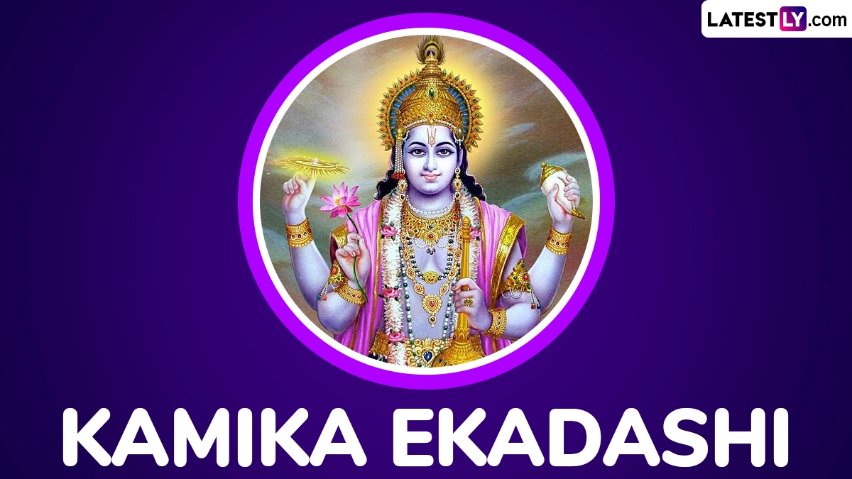Kamika Ekadashi 2025 is on Monday, July 21. It is a sacred fasting day observed during the Krishna Paksha (waning phase of the moon) in the month of Ashadha. This day holds deep religious significance for Hindus, especially devotees of Lord Vishnu. It is believed that by observing this fast with devotion, one can wash away past sins and attain spiritual merit. The name "Kamika" refers to desire, and the fast symbolises the transcendence of worldly temptations in pursuit of divine grace. To celebrate Kamika Ekadashi 2025, we bring you Kamika Ekadashi 2025 images and HD wallpapers for free download online. These Kamika Ekadashi wishes and Lord Vishnu pictures are perfect to share with Kamika Ekadashi messages and greetings on the auspicious festival.