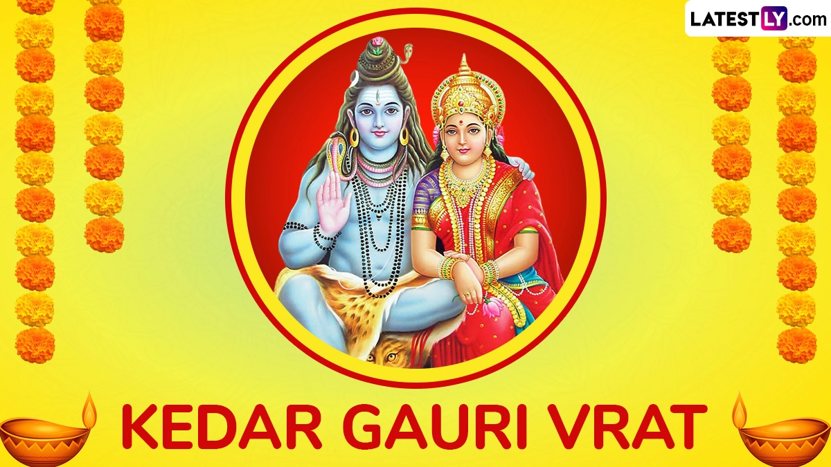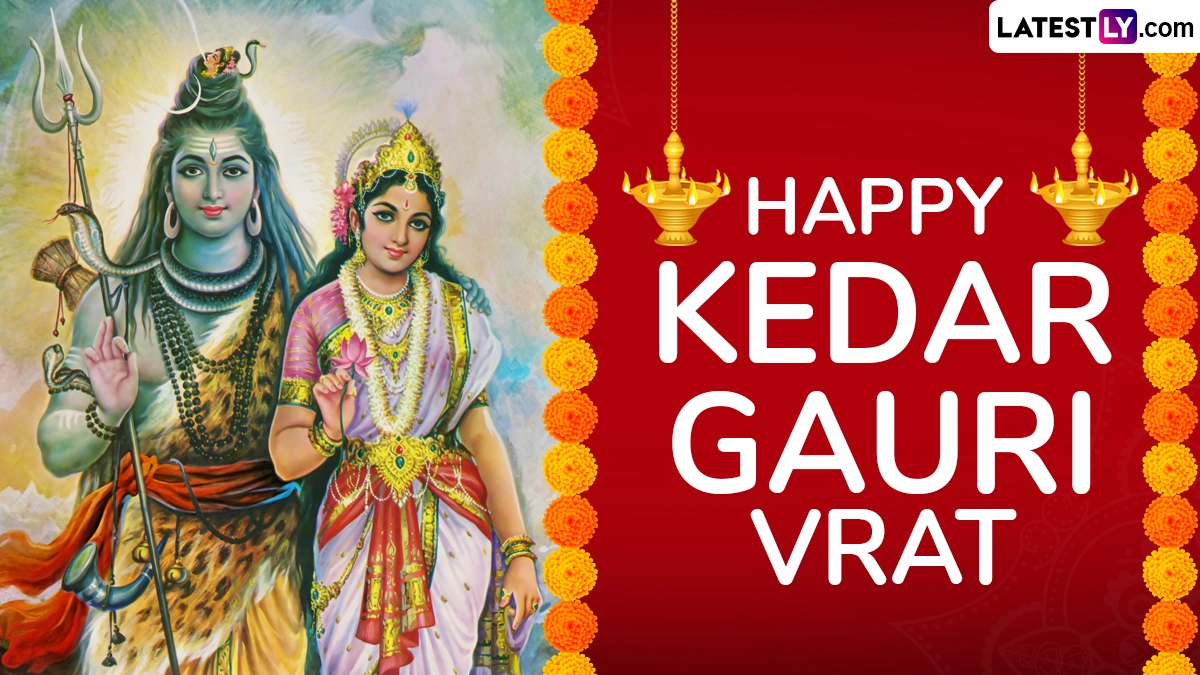 Kedar Gauri Vrat 2024 will be observed on Friday, November 1. It is a significant Hindu fast and worship ritual observed primarily by devotees of Lord Shiva and Goddess Parvati. This vrat, also known as Kedareshwar Vrat, is celebrated on the Chaturdashi of Krishna Paksha (the fourteenth day of the waning moon) in the Hindu month of Kartik, typically in October or November. The vrat is especially popular in regions like Maharashtra, Uttar Pradesh, and Uttarakhand. It is believed to bring marital bliss, unity, and harmony in relationships, as well as spiritual purification and prosperity to those who observe it with devotion. As you observe Kedar Gauri Vrat 2024, we at LatestLY have brought together a collection of Happy Kedar Gauri Vrat messages, Kedar Gauri Vrat wishes and images that you can download and share with all your loved ones to wish them on this day. Kedar Gauri Vrat 2024 Date and Auspicious Timings: Know Amavasya Tithi and Significance of the Fasting Day, Kedara Vratham.