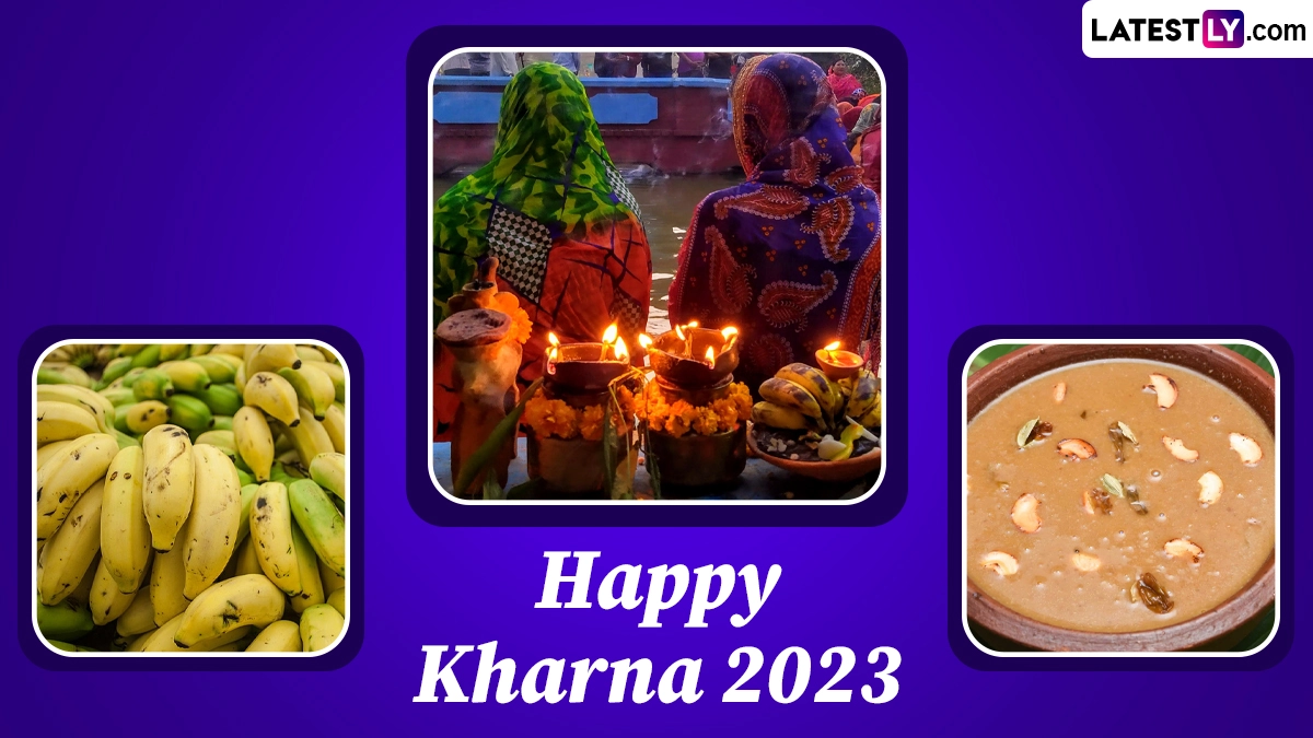 Devotees, especially women, observe a day-long fast during Kharna. This fast is considered rigorous, involving abstaining from food and water. In the evening, devotees prepare offerings for the puja, including kheer (sweet rice pudding), puris (fried bread), bananas, and other seasonal fruits. After sunset, the devotees perform the evening puja, which involves offering the prepared food to the Sun God. The offerings are then distributed among family members and consumed to break the day-long fast. During the puja, devotees seek the blessings of Chhathi Maiya and the Sun God for their family's well-being, prosperity, and longevity. Here is a wide range of messages saying Happy Kharna Day 2023 that you can download and share with all your loved ones to wish them on this day. Chhath Puja 2023 Bhojpuri Geet That Capture the Essence of Chhath Puja Festivities (Watch Videos).