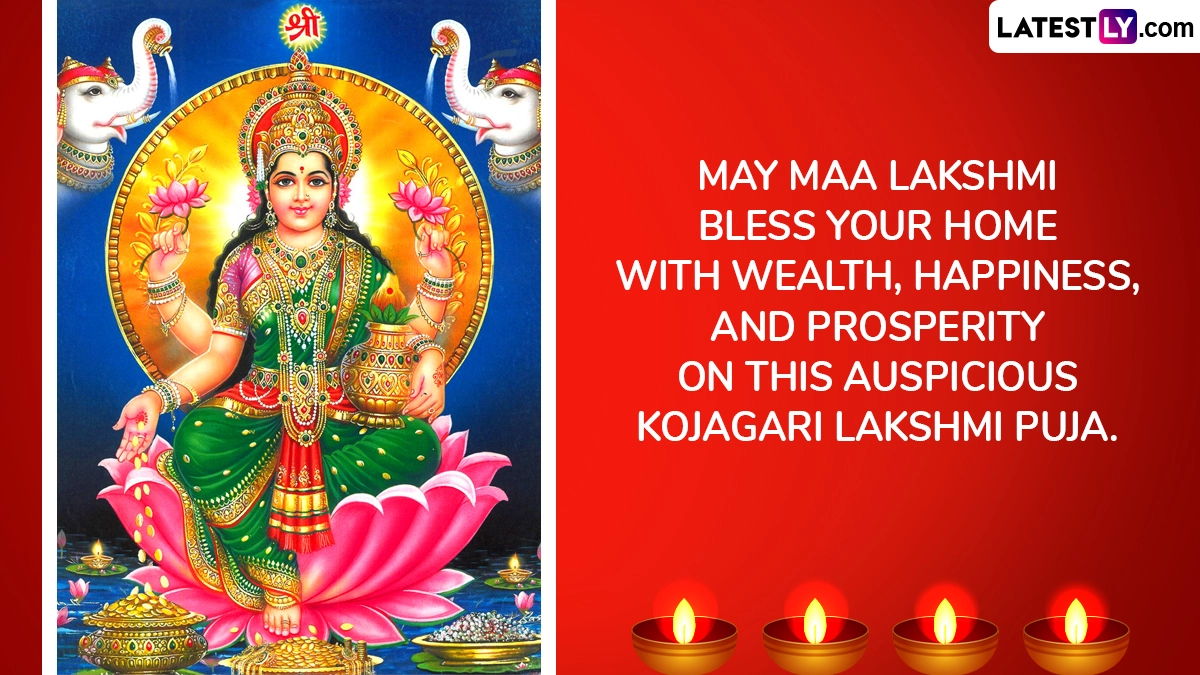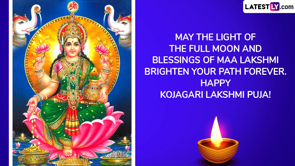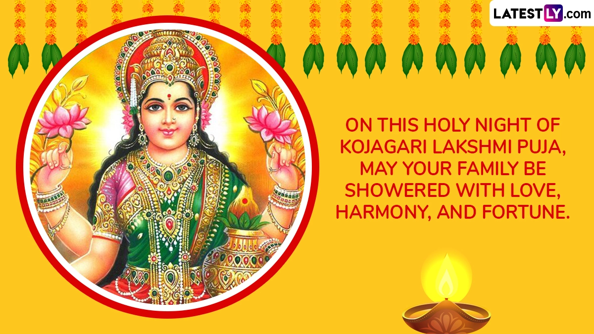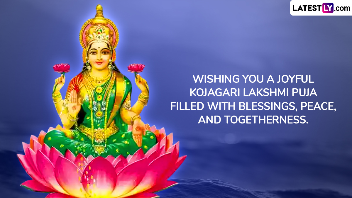 It is believed to be an extremely auspicious day that is believed to bring goodness, health and prosperity to one and all. People often get together as a community to celebrate this day. As we prepare to celebrate Kojagara Vrat 2025, here are some Happy Kojagara Vrat 2025 wishes and messages, Kojagara Puja 2025 greetings, Kojagara Puja images and wallpapers, Bengali Lakshmi Puja 2025 WhatsApp stickers and Kojagara Vrat Facebook status pictures that you can post online. When Is Lakshmi Puja 2025 in Diwali Week? Know Laxmi Puja Date, Pradosh Kaal Muhurat, Auspicious Timings and Significance To Worship Devi Lakshmi.