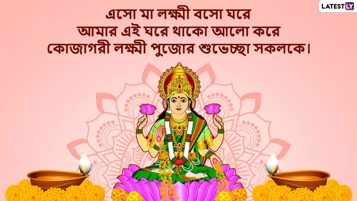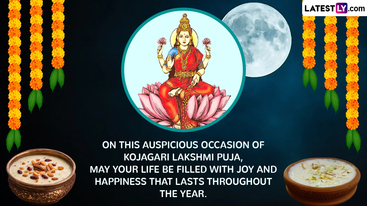 The festival of Kojagari Lakshmi Puja is observed with great devotion, particularly in Eastern India, including Bengal, Odisha, and Assam. Families clean and decorate their homes, lighting oil lamps and offering sweets, fruits, and various dishes to Goddess Lakshmi. Special prayers and rituals are performed to seek her blessings for wealth and well-being. A unique feature of Kojagara is the tradition of staying awake all night, engaging in devotional songs, prayers, and storytelling to honour the Goddess. It is believed that those who remain awake and worship Lakshmi with sincerity are blessed with abundance and prosperity. As you observe Kojagara Puja 2024, share these Subho Lokkhi Pujo wishes, Kojagari Lakshmi Puja greetings, HD images and wallpapers.