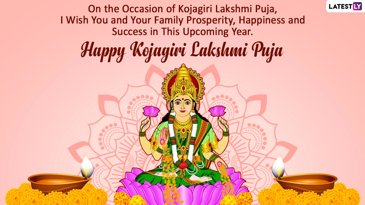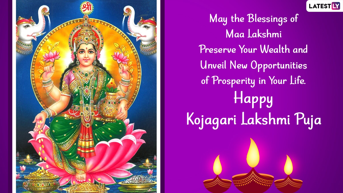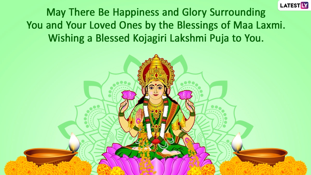 Kojagari Lakshmi Puja is an auspicious Hindu festival, mainly observed by the Bengali community. It is celebrated after the five-day Durga Puja celebrations. Kojagari Lakshmi Puja falls on October 16, with the puja timings starting on October 16 and culminating on October 17. The festival is also called Sharad Purnima, and it is usually observed on the full moon day of the Hindu lunar month of Ashwin. During this festival, devotees welcome Goddess Lakshmi to their homes. They spend time worshipping Goddess Lakshmi, the deity of good fortune, wealth and prosperity, through various rituals and traditions. To begin the celebrations, share heartfelt messages with loved ones. Below, we have curated a list of Kojagari Lakshmi Puja 2024 wishes and greetings, Happy Kojagari Lakshmi Puja messages, Goddess Durga images and wallpapers, and Lokkhi Pujo quotes. Kojagari Lakshmi Puja 2024 Date and Timings on Sharad Purnima: Kojagara Puja Time, Purnima Tithi, Rituals and Significance To Celebrate Lokkhi Pujo.