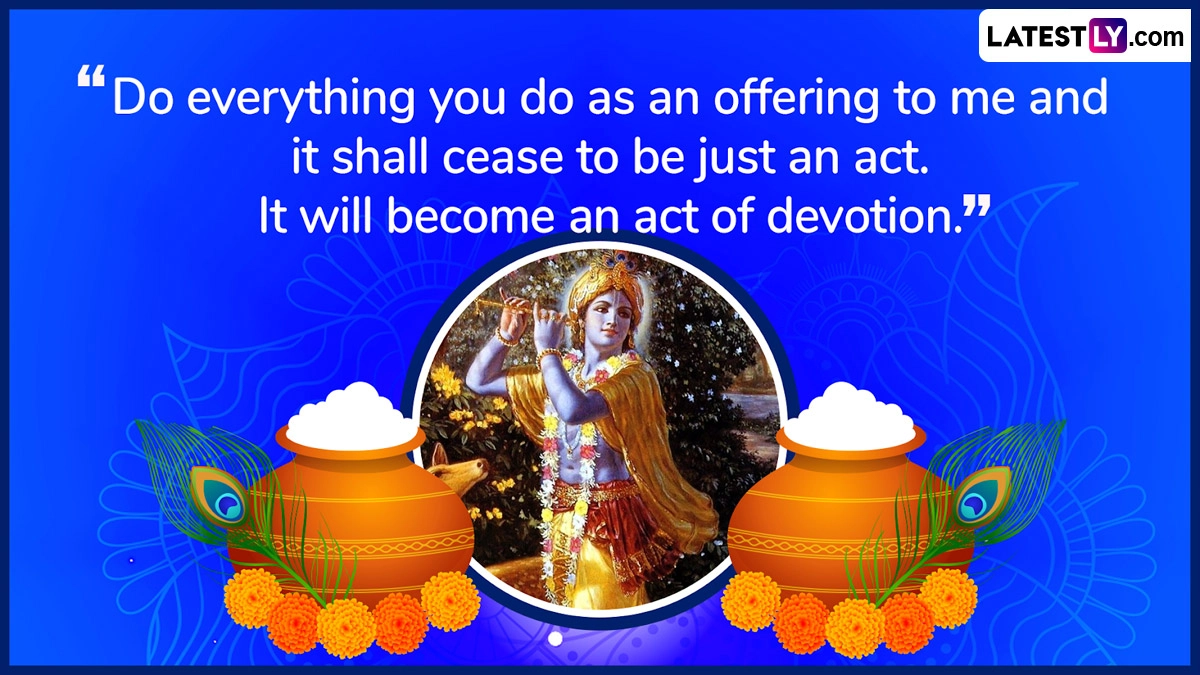 People all over India are preparing to celebrate the auspicious occasion of Krishna Janmashtami with zeal and fervour. Shri Krishna Janmashtami is observed on the Ashtami day of Krishna Paksha in the month of Bhadrapada. On Ashtami, Shri Krishna was born in Rohini Nakshatra. Since the Ashtami Tithi will fall on September 6, 2023, at 15:37 and on September 7, 2023, at 16:14, Shri Krishna Janmashtami will be observed on both days this year. As we begin to celebrate the holy occasion of Janmashtami 2023, here are some life-changing quotes by Lord Shri Krishna from the Bhagavad Gita to read and share online with your friends and family. These quotes from Lord Shri Krishna are the best way to grasp the teachings of the Bhagavad Gita. September 2023 Holidays Calendar With Major Festivals and Events: Get a List of Important Dates of the Ninth Month.