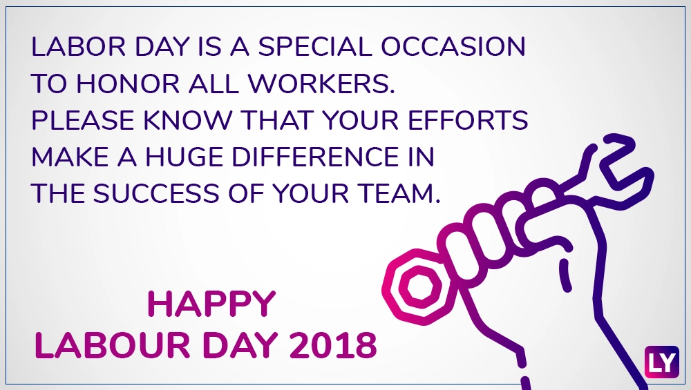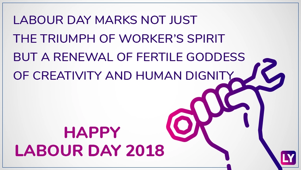 International Workers’ Day, commonly known as Labour Day or May Day is observed annually on the first of May all over the world. The day holds a significant place in the history after all it marked the onset of eight-hour day movement that advocated eight hours for work, eight hours for recreation, and eight hours for rest. Labour Day commemorates on May 1, an annual spring festival to celebrate the hard work and achievements of labours and workers globally. The day is important for all of us as thanks to the May Day every individual’s contributions to building society is appreciated. On the occasion of Labour Day 2018, we have listed down a collection of inspirational May Day quotes, wishes, GIF images that can be sent via WhatsApp or SMS or even set as Facebook status. Yes, celebrating International Workers’ Day with motivating greetings is a must and trust us, sending to your colleagues, family and friends will be a fulfilling experience. Labour Day & International Workers' Day 2018: Origin, Historical Importance, Significance & How Does It Matter To India.