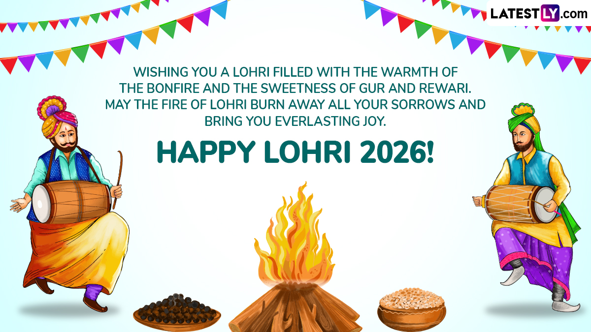 New Delhi, January 13: The rhythmic beat of the dhol and the warmth of community bonfires are set to take center stage as India celebrates Lohri 2026 today, January 13. Marking the culmination of the peak winter season and the arrival of longer days, the harvest festival remains a cornerstone of cultural life in Northern India, particularly in Punjab, Haryana, and Delhi. This year, the festivities are seeing a significant digital surge, with millions of citizens exchanging AI-curated wishes, greetings and messages, and high-definition images and wallpapers to mark the "victory of light" and the start of the Rabi harvest season. If you are looking for Lohri 2026 wishes, greetings, WhatsApp messages, images and HD wallpapers, below is everything for you.