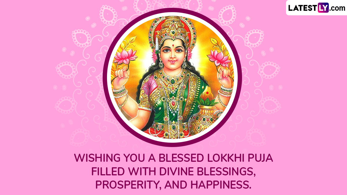 The celebration of Lokkhi Puja or Bengali Lakshmi Puja revolves around the story of Goddess Lakshmi’s visit to earth on the occasion of Ashvin Purnima. It is believed that Goddess Lakshmi visited devotees who stayed away through the night, awaiting her, and blessed them with prosperity and wealth. As we prepare to celebrate Lokkhi Puja 2025, here are some Happy Lokkhi Puja 2025 wishes and messages, Bengali Lakshmi Puja greetings, Lokkhi Puja images and wallpapers, Happy Bengali Lakshmi Puja WhatsApp stickers and Happy Lokkhi Puja Facebook status pictures that you can post online. Kojagara Puja 2025 Greetings: Send Kojagari Lakshmi Puja Wishes, Subho Lokkhi Pujo Messages, Goddess Lakshmi HD Images and Wallpapers on Sharad Purnima.