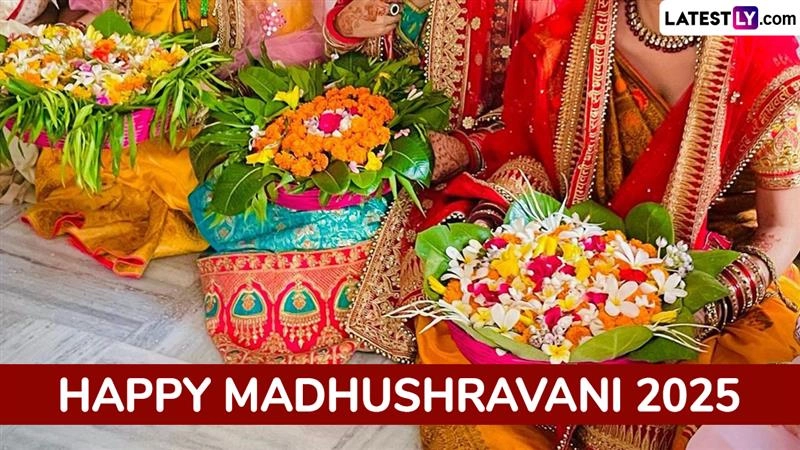 Madhushravani, primarily celebrated in Mithila culture, is a 13-day festival where newlywed women express gratitude for marital bliss and invoke divine blessings. This festival is uniquely feminine in nature, deeply intertwined with local mythology, seasonal change, and agricultural traditions. It starts after the bride’s first Shravan after marriage and is observed with daily fasts, prayers, and storytelling in her in-laws’ home. Madhushravani 2025 starts on July 15 and ends on July 27. To honour Mithila's ritual, we bring you Madhushravani 2025 greetings, WhatsApp wishes, images, HD wallpapers, quotes and messages that you can share during the Hindu festival celebrated by newly married women.