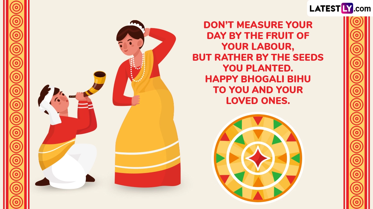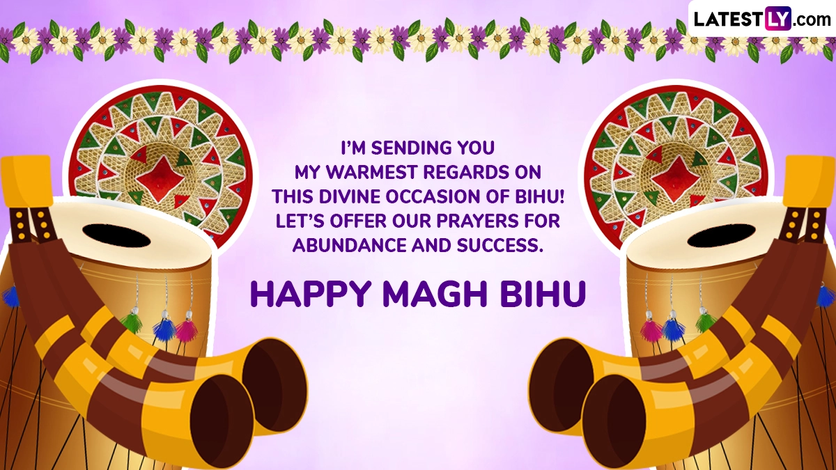 Magh Bihu 2025 is on January 15. Also known as Bhogali Bihu, this annual commemoration is celebrated with great fervour and enthusiasm by people across Assam and is known as a popular winter harvest festival. Every year, Magh Bihu celebrations are marked around the same time as Makar Sankranti. On the occasion of Magh Bihu, people often share Happy Magh Bihu 2025 wishes and messages, Bhogali Bihu images and wallpapers, Magh Bihu 2025 greetings, Happy Magh Bihu WhatsApp photos and Magh Bihu pictures with family and friends. Magh Bihu 2025 Date in Assamese Calendar: Which Day Is Uruka? Know Names of 7 Days of Magh Bihu, Significance, Traditions and Celebrations, Know All About Bhogali Bihu.