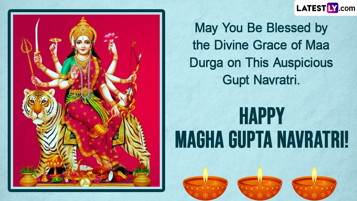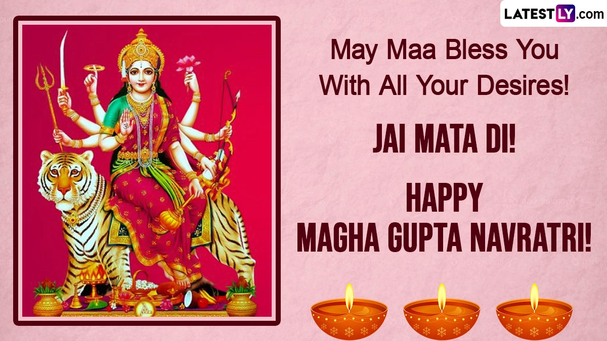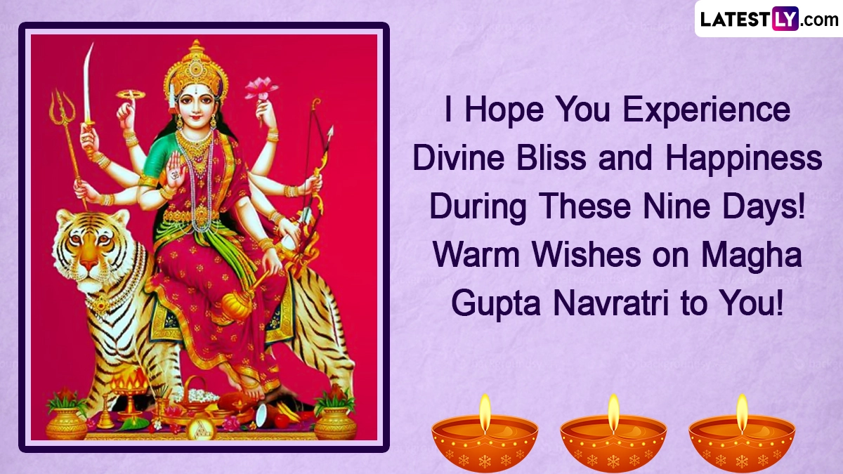 Magha Navratri, also known as Gupta Navratri, is a nine-day festival dedicated to nine forms of Shakti or mother goddess. This year, it will start on Sunday, January 22 and will end on Monday, January 30. Magha Gupta Navratri falls in the month of Magh of the Hindu calendar, which is observed during January or February of the Gregorian calendar. It is majorly observed in the states like Punjab, Haryana, Himachal Pradesh, Uttar Pradesh and Uttarakhand. As you observe Magha Navratri 2023, we at LatestLY have compiled a few Magha Gupta Navratri 2023 wishes and greetings that you can share with your family and friends as WhatsApp messages, images, HD wallpapers and SMS. Hindu New Year 2023 Chaitra Navratri Start and End Dates: When Is Vasant Navratri Ghatasthapana Shubh Muhurat? Know All 9 Forms of Durga and Significance.