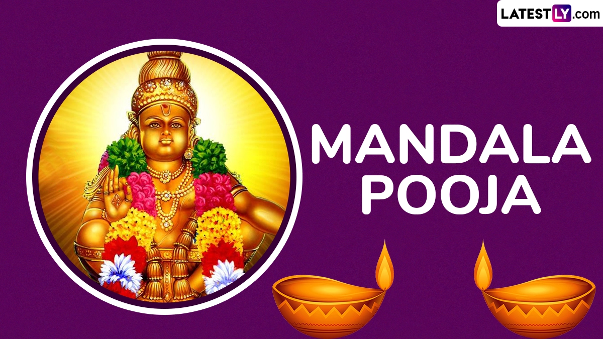 Mandala Pooja 2024 will be observed on Thursday, December 26. It is a significant Hindu ritual performed over 41 days, primarily observed in temples dedicated to Lord Ayyappa, such as the Sabarimala Temple in Kerala. The word "Mandala" refers to a period of 41 days, symbolising spiritual discipline, devotion, and self-purification. Devotees undertake this pooja as part of their pilgrimage to achieve mental clarity and divine blessings. The ritual begins with rigorous austerities, including a strict vegetarian diet, abstinence, and daily prayers, reflecting the devotees’ unwavering commitment to spiritual growth. Amid the festivity, share these Mandala Pooja 2024 greetings, Happy Mandala Puja wishes, HD images, wallpapers, quotes and messages to celebrate the auspicious ritual. Sabarimala Mandala Pooja 2024 Date in Kerala: When Is Lord Ayyappa Mandala Puja or Mandalakala? What Is Significance of Mandala Vratham? Everything To Know.