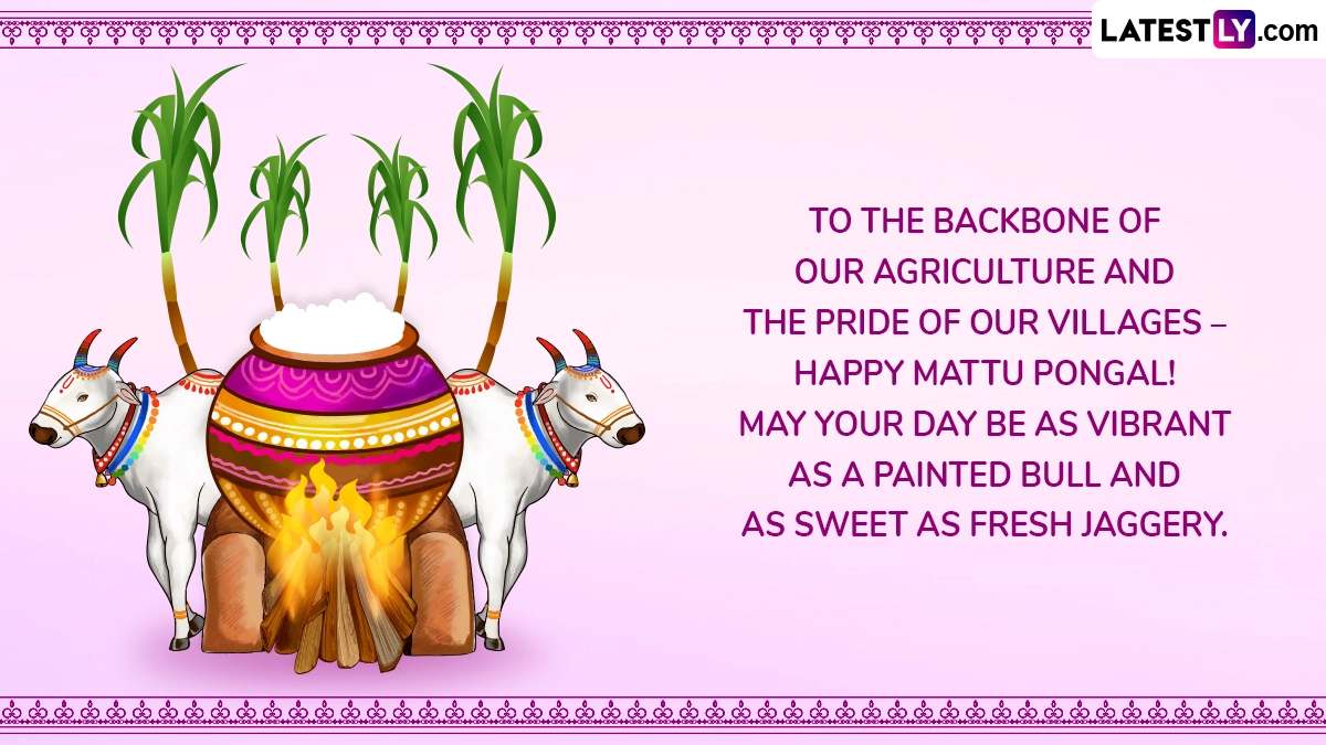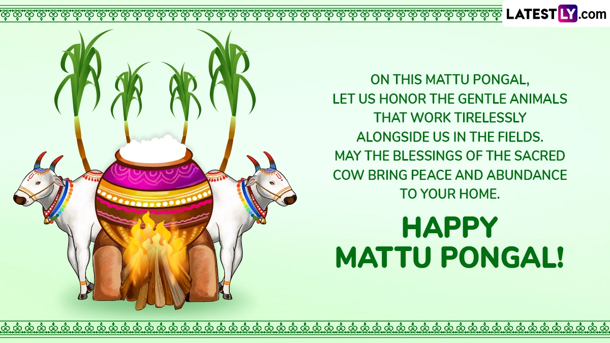 Mumbai, January 15: As the four-day harvest festival continues across South India, communities today celebrate Mattu Pongal 2026, a day exclusively dedicated to honoring cattle for their essential role in agriculture. Falling on Thursday, January 15, 2026, this third day of the Pongal season marks a shift from worshipping the Sun God to expressing gratitude toward the bulls and cows that provide labor and milk, sustaining the rural economy. Scroll down to get Happy Mattu Pongal 2026 wishes, greetings, WhatsApp message, imgaes and HD wallpapers that you can share with your loved ones.