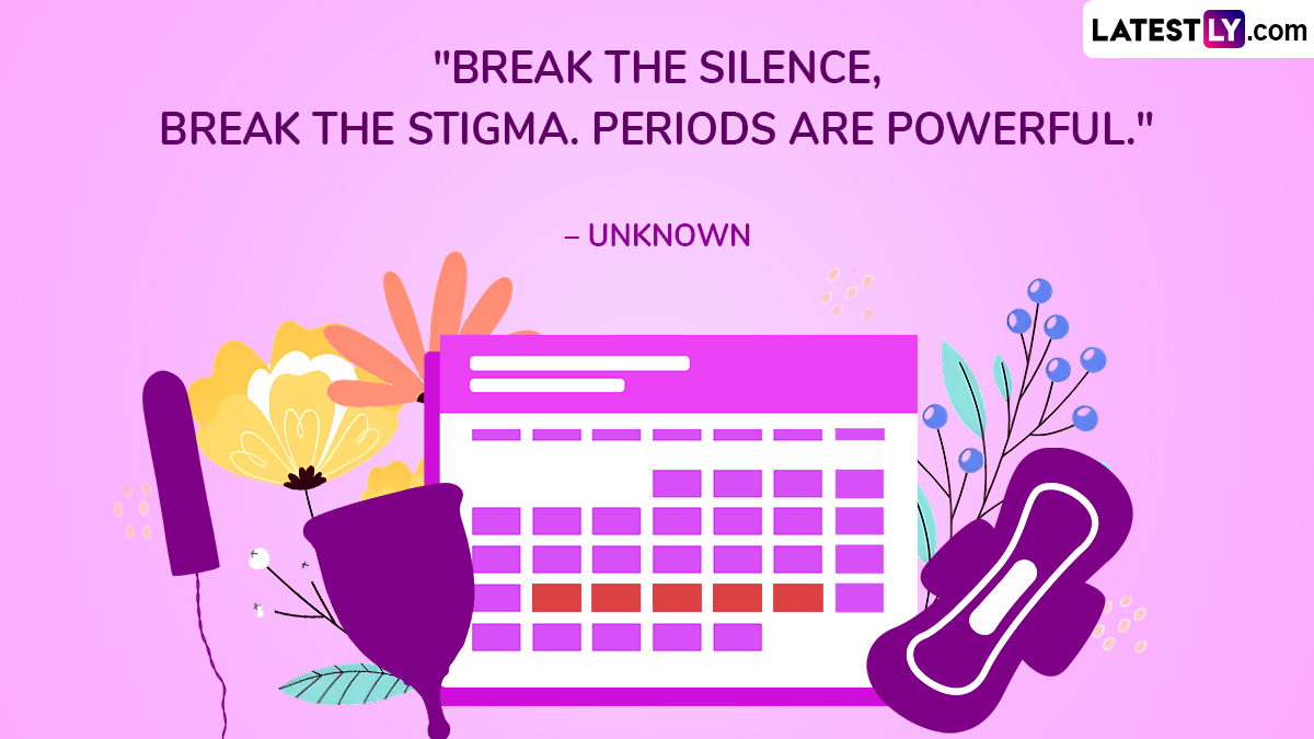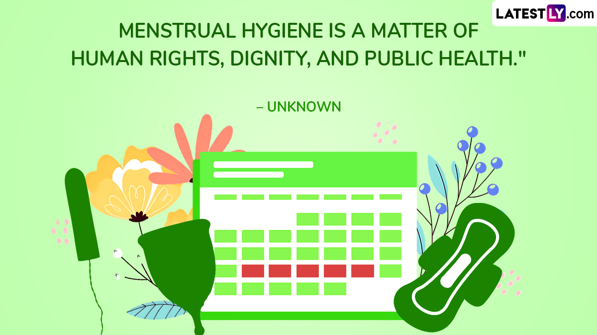 Menstrual Hygiene Day, observed annually on May 28, aims to break the silence and raise awareness about the importance of good menstrual hygiene management (MHM). Menstrual Hygiene Day 2025 falls on Wednesday. Initiated by the NGO WASH United in 2014, the day serves as a global platform to advocate for education, sanitation access, and ending stigma surrounding menstruation. The date 28/5 symbolises the average menstrual cycle of 28 days and menstruation lasting about five days, emphasising the need to normalise conversations around periods. Here's a bunch of powerful quotes and messages for Menstrual Hygiene Day 2025 to raise awareness, promote good menstrual health, and break the stigma around periods. Share these inspiring words to support period positivity and educate your community. Menstrual Hygiene Day Messages and Images: Send Quotes, Slogans and Wallpapers To Highlight the Importance of Menstrual Care.