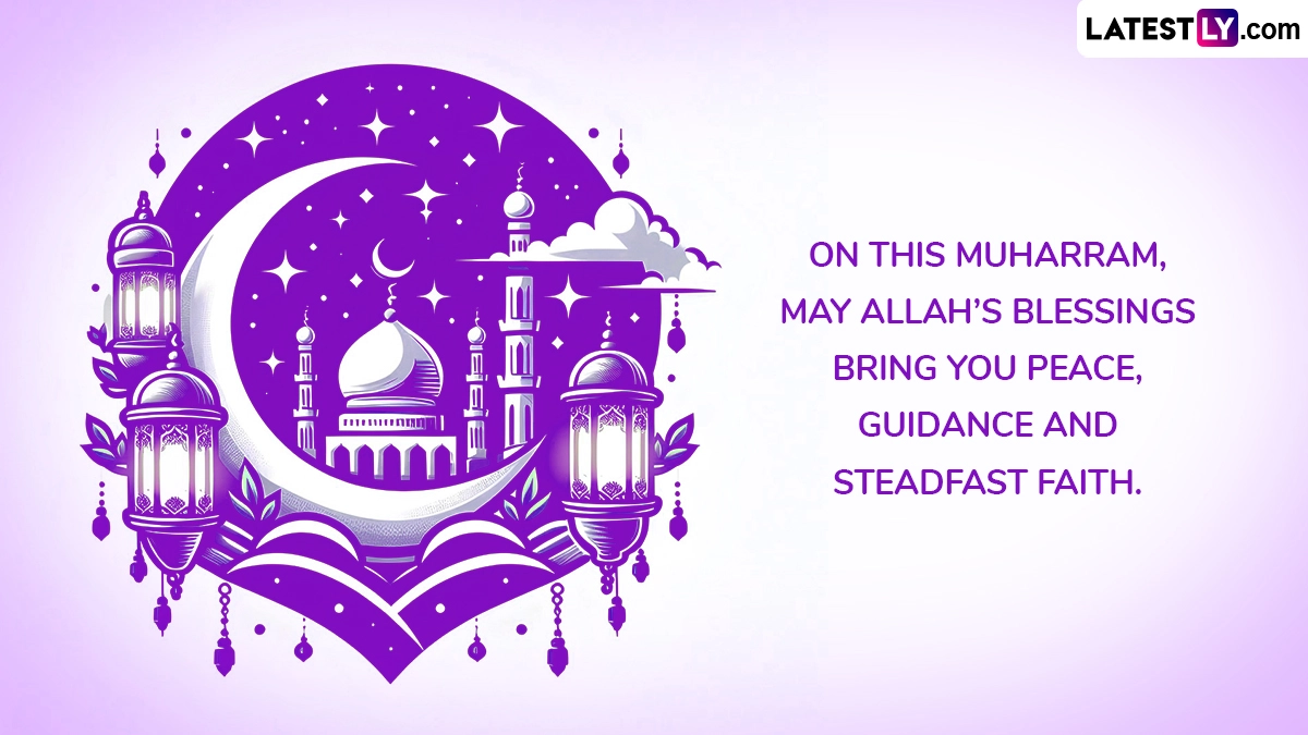 Islamic New Year, also known as Hijri New Year, marks the beginning of the lunar Islamic calendar and starts with the sacred month of Muharram. It commemorates the Prophet Muhammad’s historic migration (Hijrah) from Mecca to Medina, a defining event that laid the foundation for the Muslim community and signifies a transition from hardship to hope. This calendar system, which began in 622 CE, reminds Muslims of the importance of faith, perseverance, and community. To mark the first month of Islamic New Year 2025, share these Muharram 2025 messages, greetings, Hijri New Year images, photos and HD wallpapers to express gratitude on the sacred month. Islamic New Year 2025 Greetings As New Hijri Year 1447 AH Begins: Share HD Wallpapers, Messages, Photos and Sayings As Islamic New Year Begins With Sighting of Muharram Moon.