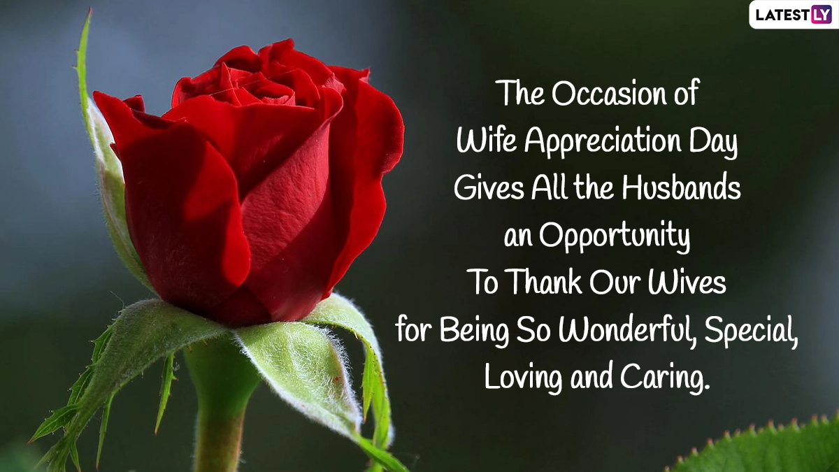 Wife Appreciation Day is not just about grand gestures or gifts; it is also a time to acknowledge the everyday acts of love, care, and effort that wives invest in their families. Whether it’s balancing work and home life, raising children, supporting their partners through challenges, or simply being a source of comfort and companionship, wives play an essential role in the fabric of daily life. National Wife Appreciation Day is an invitation to reflect on these contributions and express sincere gratitude in meaningful ways. As you observe Wife Appreciation Day 2024, share these Wife Appreciation Day 2024 wishes, HD images, romantic messages, love quotes, cute GIFs, greetings and wallpapers and celebrate the day.