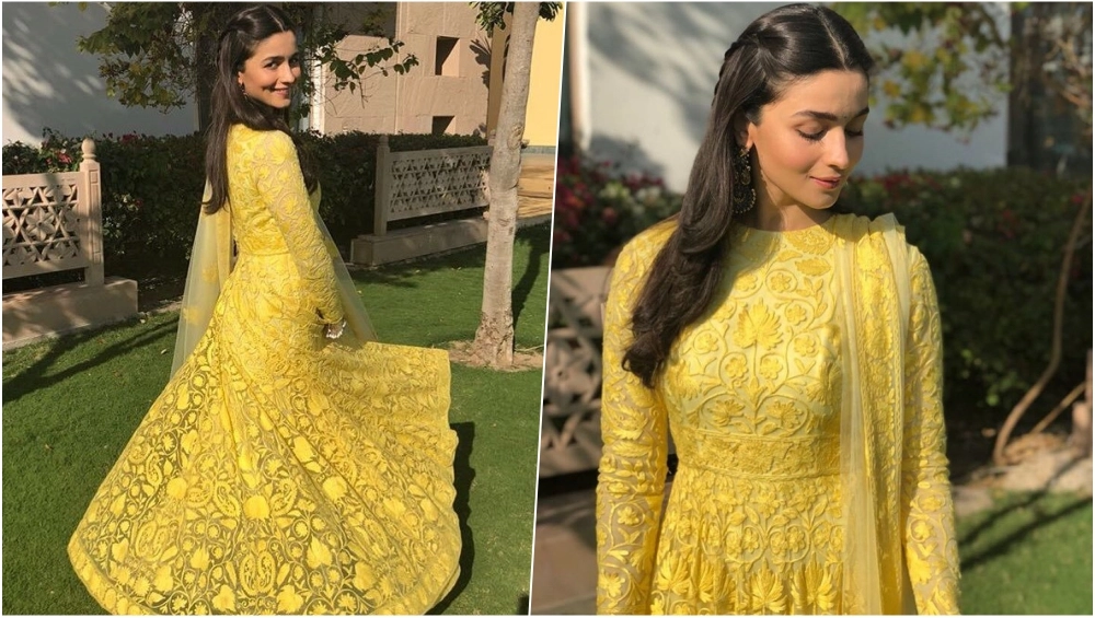 Alia Bhatt is known for her perkiness and she is cuteness overloaded. In this yellow anarkali, Alia could make the whole world shine with her bright smile. Alia’s outfit is perfect for the Navratri season.