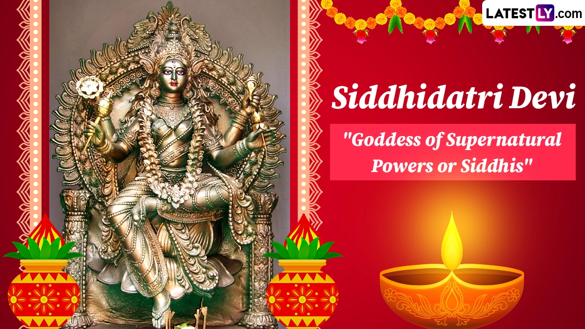 Devi Siddhidatri is the ninth and final form of Goddess Durga, worshipped during the Navratri festival. This year, the ninth Navratri would fall on October 23. Worshipping her is believed to grant spiritual enlightenment and the fulfilment of desires. As you observe the ninth day of Navratri 2023, we have compiled all the things that you must know about Devi SIddhidatri on this day. Navratri 2023 Day 8 – Maa Mahagauri Puja: Know All About The Eighth Form of Maa Durga Worshipped on the 8th Day of Navratri Festival.