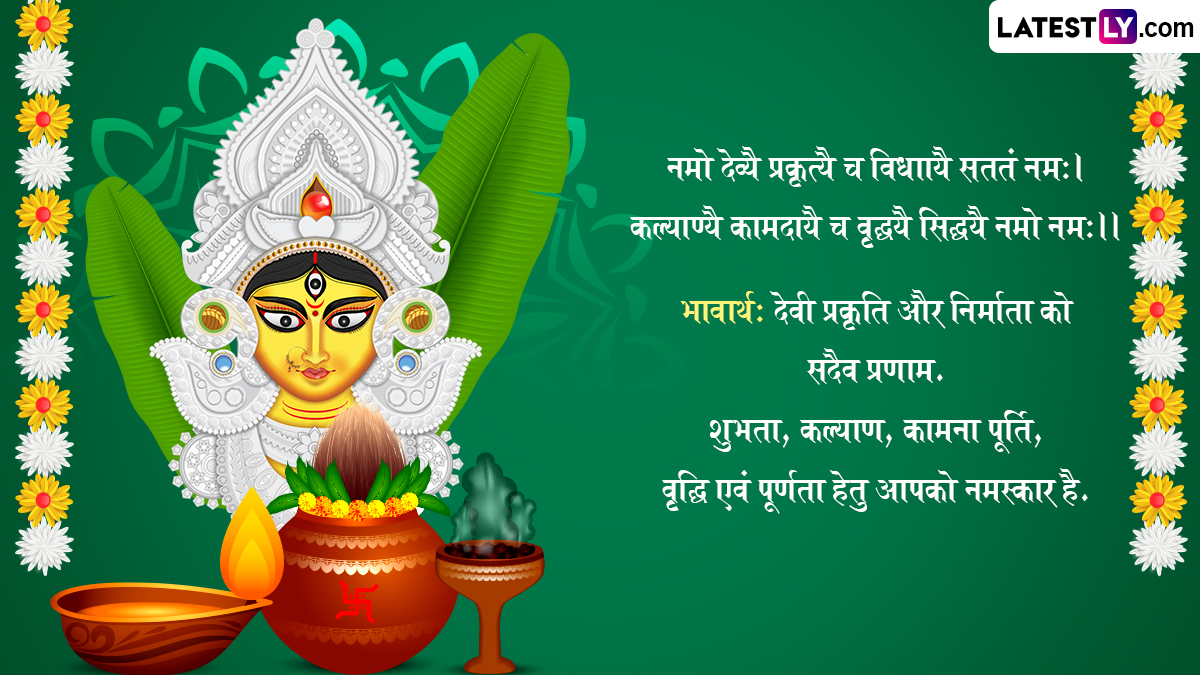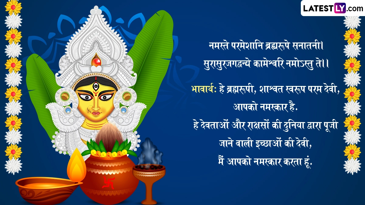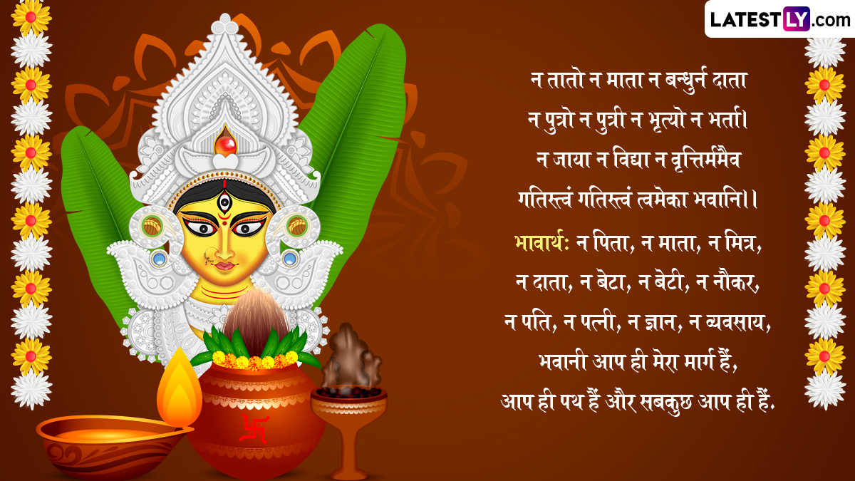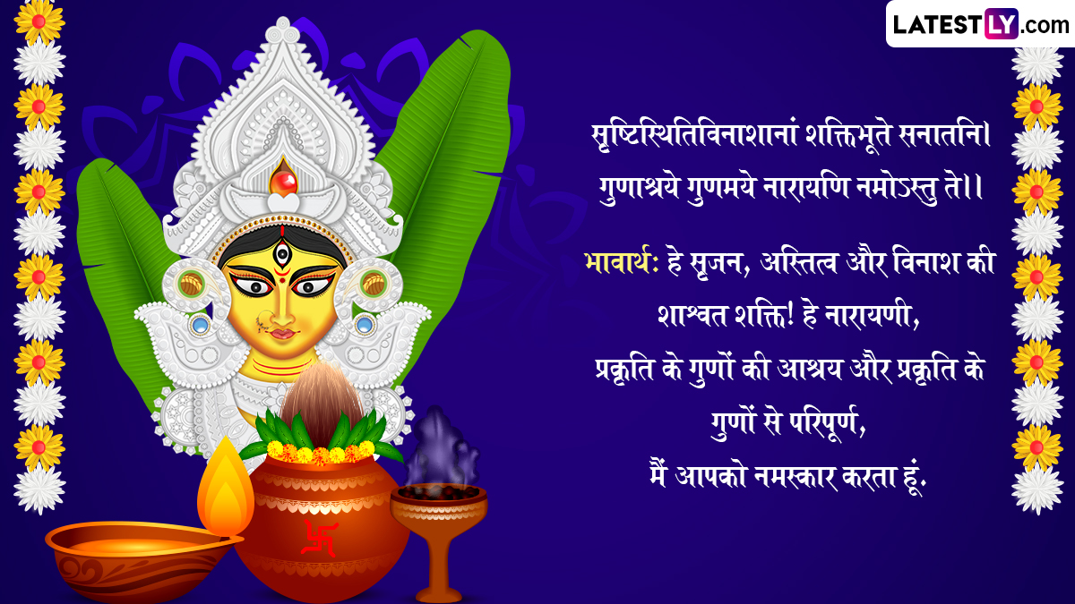 Navratri 2025, one of the most auspicious Hindu festivals, will be celebrated with devotion and grandeur as devotees worship Goddess Durga in her nine divine forms. People celebrate Navratri four times a year, Sharad Navratri being the most celebrated and significant of all. Sharad Navratri 2025 starts on September 22 and ends on October 2. This sacred festival, symbolising the triumph of good over evil, is marked by vibrant traditions, fasting, prayers, and cultural celebrations across India. Sharing Navratri quotes, Sanskrit shlokas, wishes and greetings is a beautiful way to express devotion and spread festive cheer among family and friends. To honour Maa Durga, here are inspiring words and images dedicated to the Goddess that you can share during this nine-day celebration. Navratri 2025 Fasting Rules and Guidelines: What Foods To Eat for Energy and Which Ingredients To Avoid During the Nine-Day Vrat.