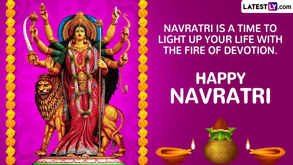 Ghatasthapana marks the beginning of Shard Navratri, a nine-day festival among the Hindus that celebrates the divine feminine energy of Maa Durga. Ghatasthapana is an auspicious ritual performed on the first day of Navratri to symbolise the invocation of Goddess Durga. Ghatasthapana 2024 falls on October 3, which marks the beginning of Sharad Navratri. Sharad Navratri 2024 starts on October 3 and ends on October 12. People all across India come together to celebrate the holy occasion. Ghatasthapana, also known as Kalash Sthapana, is a significant ritual that involves the establishment of a kalash (sacred pot) as a symbol of the presence of Goddess Durga. We at LatestLY have collated Navratri Ghatasthapana 2024 wishes, messages and WhatsApp greetings to celebrate the first day of Navratri 2024.