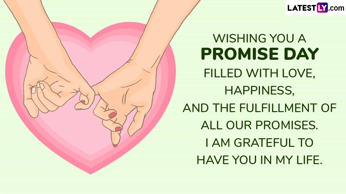 Promise Day, celebrated on February 11 as part of Valentine Week, is a day dedicated to making heartfelt commitments in relationships. It emphasises trust, loyalty, and the importance of keeping one’s word in love and friendship. Couples exchange promises that strengthen their bond, whether it’s a vow to always support each other, to communicate openly, or to stand together through life’s ups and downs. To celebrate Promise Day 2025, we bring you Promise Day 2025 wishes and HD images. Wish Happy Promise Day with these V-Day Greetings, romantic messages, wallpapers and quotes to strengthen the bond with your Valentine. Rose Day, Chocolate Day, Valentine’s Day and More, Here’s the Date Sheet To Celebrate Valentine Week.
