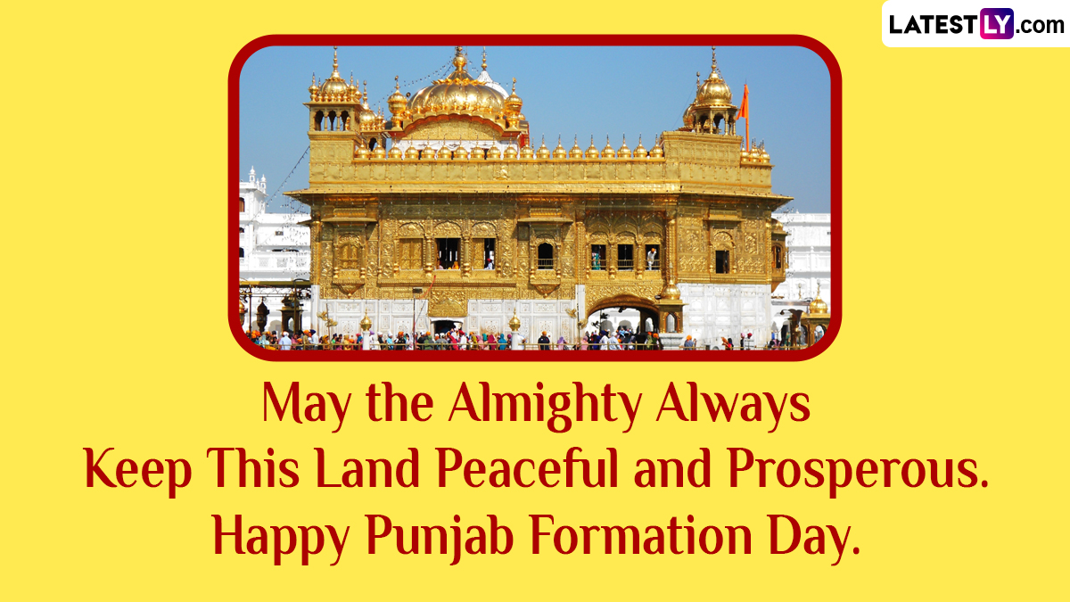 Punjab Formation Day, also called Punjab Day, is celebrated in the state every year on November 1. Punjab Formation Day 2024 falls on Friday, November 1. The celebration marks the official formation day of the state. Previously, Punjab was a larger state and it included present-day Haryana, Himachal Pradesh and Chandigarh. However, in 1966 the state was restructured, and it led to the creation of the present-day Punjab state. The state boasts some delicious delicacies, the Golden Temple, architectural wonders and natural landscapes. To celebrate the day, share Punjab Formation Day 2024 wishes, Punjab Formation Day messages, Punjab Formation Day greetings and Punjab Day images, quotes and wallpapers. Punjab Formation Day: Know Date, History and Significance of the Day When the State of Punjab Was Formed.