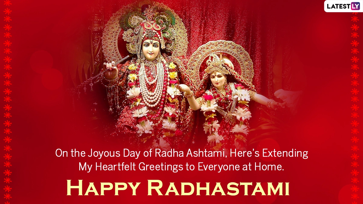 Temples and homes are decorated with flowers and lights, and special pujas (worship rituals) are performed to celebrate Radha's divine qualities. Devotees engage in recitations of sacred texts like the 'Radha Ashtakshara' and sing devotional hymns that extol the virtues and divine love of Radha. Offerings of sweets, fruits, and other delicacies are made to the goddess, reflecting the festive spirit and devotion. As you observe Radha Ashtami 2024, we at LatestLY, bring you Happy Radha Ashtami 2024 wishes, HD images, Radhashtami greetings, messages and wallpapers to celebrate Goddess Radha's birthday. September 2024 Festivals, Events and Holidays Calendar: Complete List of Important National and International Days and Dates.