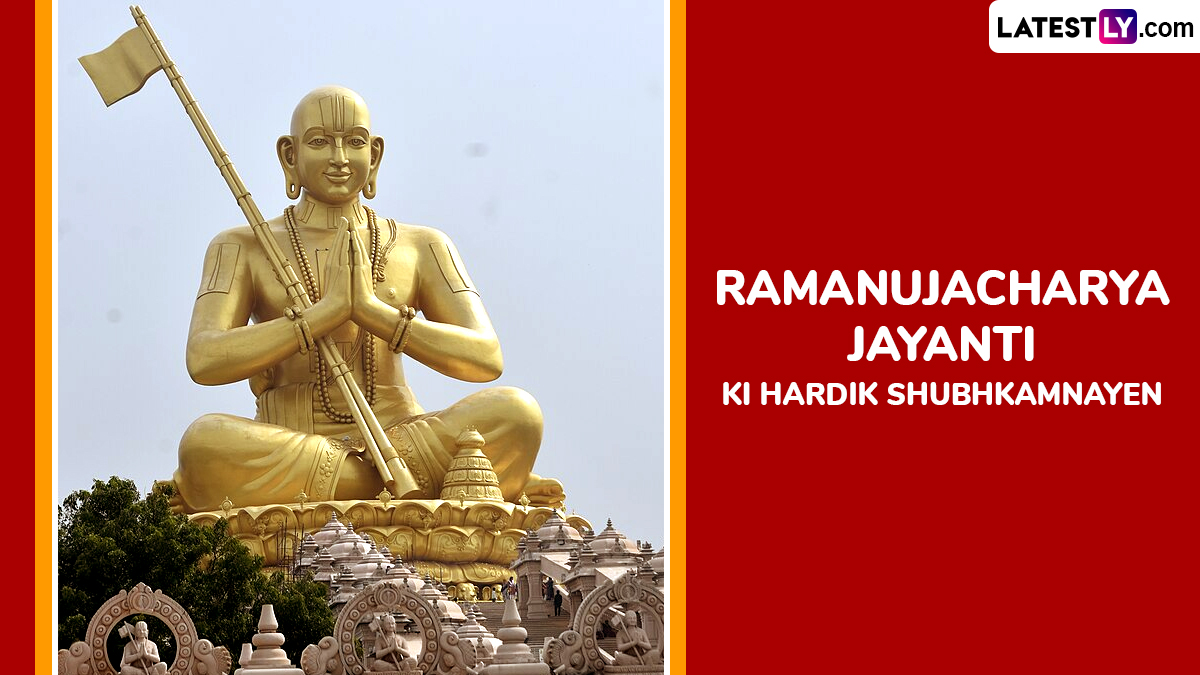 Ramanujacharya Jayanti 2025 falls on Friday, May 2. This day celebrates the birth of the great theologian and philosopher Ramanujacharya, born in 1017 CE. He is renowned for formulating the Vishishtadvaita (qualified non-dualism) school of Vedanta, which harmonises the unity of the soul with the divine while acknowledging individual distinctions. To honour the birth anniversary of ShriĀ Ramanujacharya, the great theologian and philosopher, share theseĀ Ramanujacharya Jayanti 2025 wishes, WhatsApp messages, images, greetings, quotes and HD wallpapers.Ā Indian New Year 2025 Calendar Dates: Guide to Hindu and Other State-Wise Regional Festivals and New Year's Days.Ā