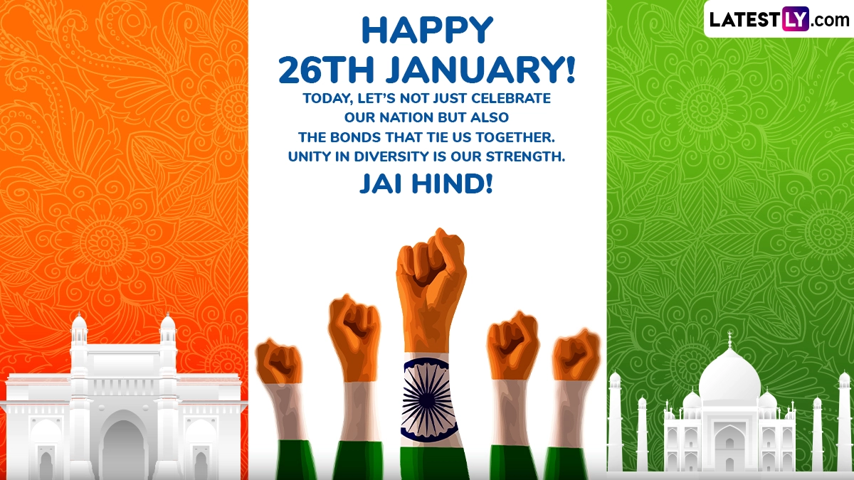 Republic Day is also a time for the people of the nation to come together and reflect on our past, rich history, cultural heritage, diversity, and achievements over the year and look forward to a brighter and better future. It reminds us of all the hard work done by leaders to draft the Constitution. Their vision of equality and justice continues to guide the country’s growth. On this day, it is common tradition to send heartfelt texts and patriotic sayings to near and dear ones. To help, we have compiled a list of Republic Day 2025 wishes and greetings, Happy Republic Day patriotic quotes and messages, and Gantantra Diwas HD images and wallpapers. You can simply download them online for free and share them via Facebook or WhatsApp. Republic Day 2025 Tableaux: Uttar Pradesh Tableau on Kartavya Path To Showcase ‘Maha Kumbh 2025’ Event, Will Feature Replica of ‘Amrit Kalash’ at Forefront (See Pics).