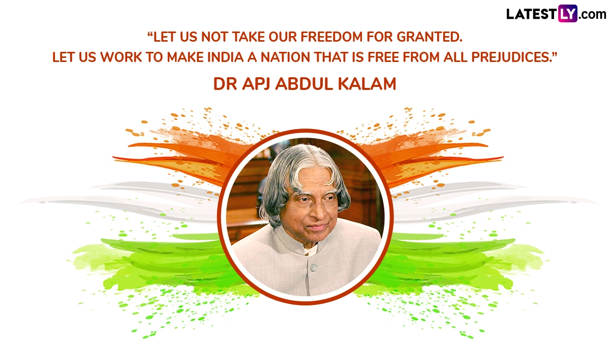 "Let Us Not Take Our Freedom for Granted. Let Us Work To Make India a Nation That Is Free From All Prejudices." Dr APJ Abdul Kalam