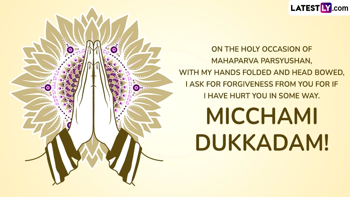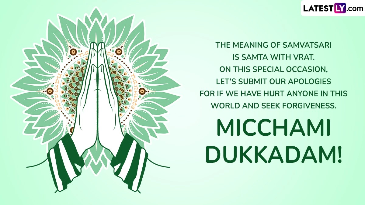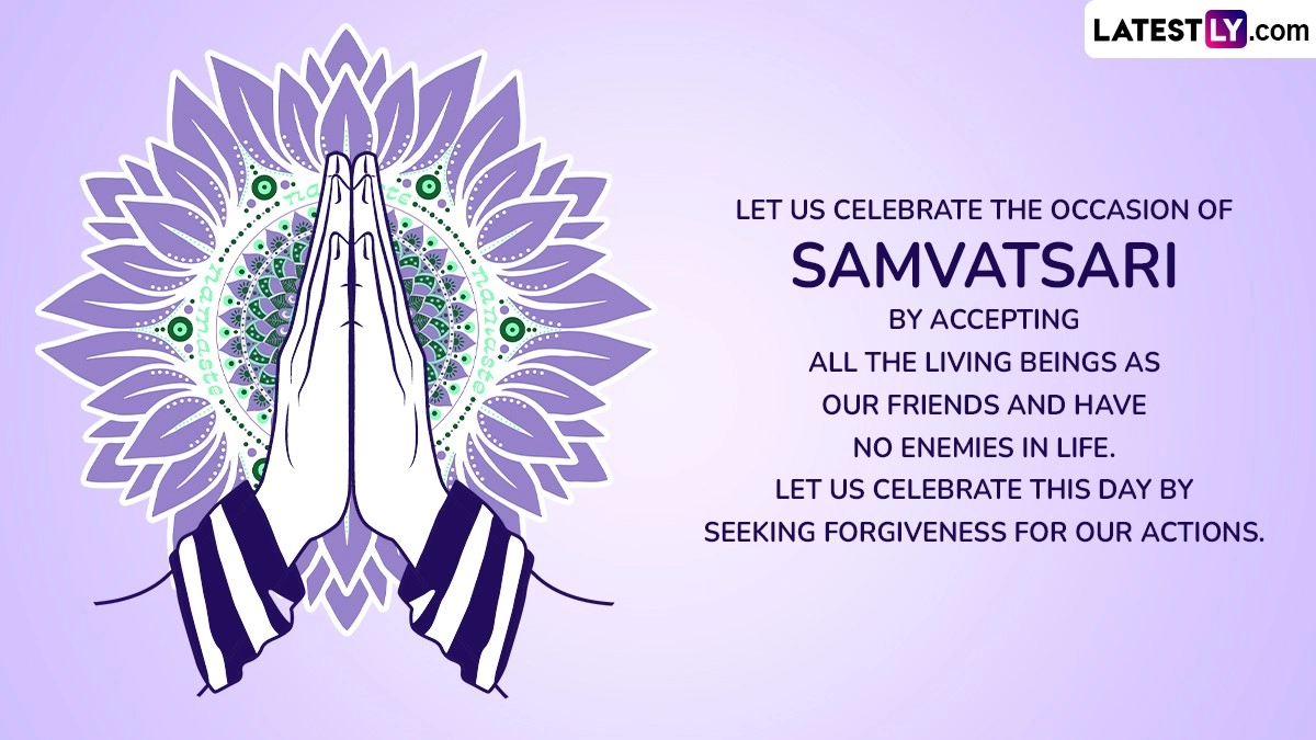 Samvatsari 2024 falls on Saturday, September 7. It is an important festival in Jainism, observed primarily by the Svetambara sect on the last day of Paryushana, an eight-day period of fasting, reflection, and spiritual purification. Known as the 'Day of Forgiveness,' or 'Kshamavani Parva,' Samvatsari is dedicated to the practice of 'Micchami Dukkadam,' a ritual of seeking and granting forgiveness for any wrongs or hurt caused intentionally or unintentionally throughout the year. This day emphasises the core Jain principles of non-violence, humility, and compassion, fostering inner peace and reconciliation among individuals. On the special occasion of Samvatsari 2024, we bring you Samvatsari 2024 messages and Micchami Dukkadam HD images that you can download for free online and share with your closed ones to seek forgiveness. These Kshamavani Parva quotes, wallpapers and greetings accurately define the significance of forgiveness on Samvatsari.