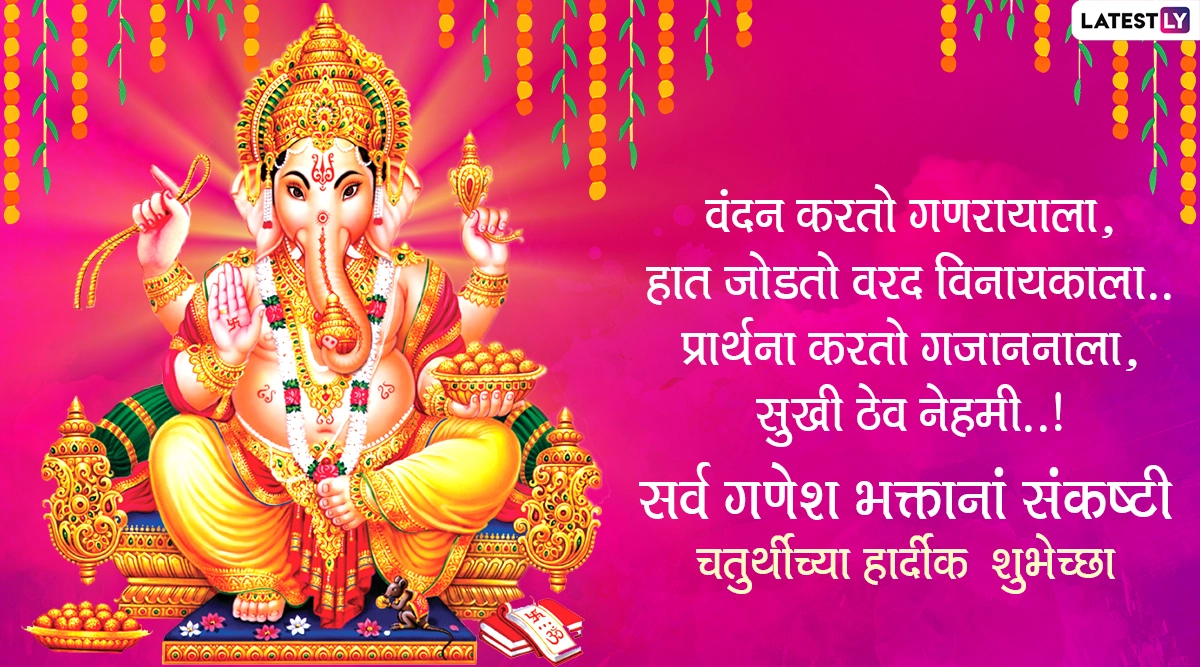 Message Reads: рд╡рдВрджрди рдХрд░рддреЛ рдЧрдгрд░рд╛рдпрд╛рд▓рд╛, рд╣рд╛рдд рдЬреЛрдбрддреЛ рд╡рд░рдж рд╡рд┐рдирд╛рдпрдХрд╛рд▓рд╛.. рдкреНрд░рд╛рд░реНрдердирд╛ рдХрд░рддреЛ рдЧрдЬрд╛рдирдирд╛рд▓рд╛, рд╕реБрдЦреА рдареЗрд╡ рдиреЗрд╣рдореА..! рд╕рд░реНрд╡ рдЧрдгреЗрд╢ рднрдХреНрддрд╛рдирд╛рдВ рд╕рдВрдХрд╖реНрдЯреА рдЪрддреБрд░реНрдереАрдЪреНрдпрд╛ рд╣рд╛рд░реНрджреАрдХ рд╢реБрднреЗрдЪреНрдЫрд╛