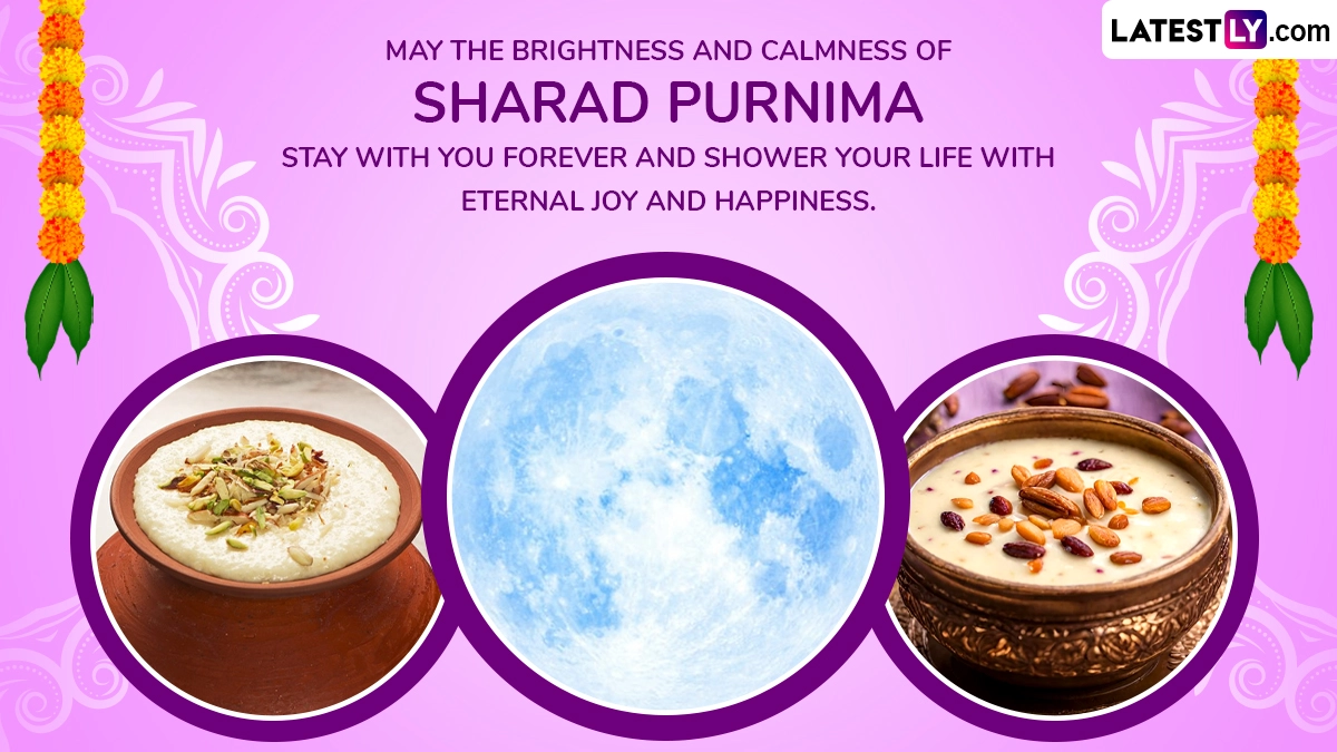 Sharad Purnima, also known as Kojagiri Purnima, is a Hindu festival celebrated on the full moon day of the Hindu month of Ashwin (September-October). This year it will be observed on Wednesday, October 16. It marks the end of the monsoon season and the beginning of the harvest season in many parts of India. The night is believed to be particularly significant, as it is said that the moon shines its brightest and closest to the Earth on this day, showering its healing and nourishing rays. To celebrate the auspicious occasion of Sharad Purnima, share these Sharad Purnima 2024 wishes, images, HD wallpapers, WhatsApp messages, Kojagiri Purnima greetings and photos.