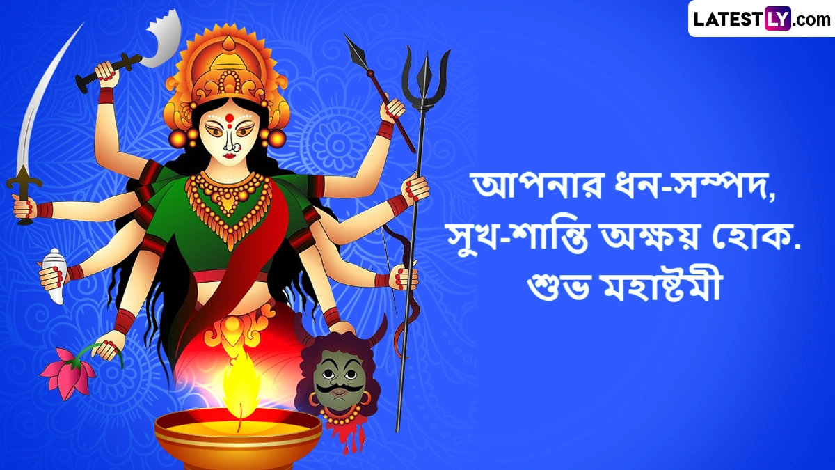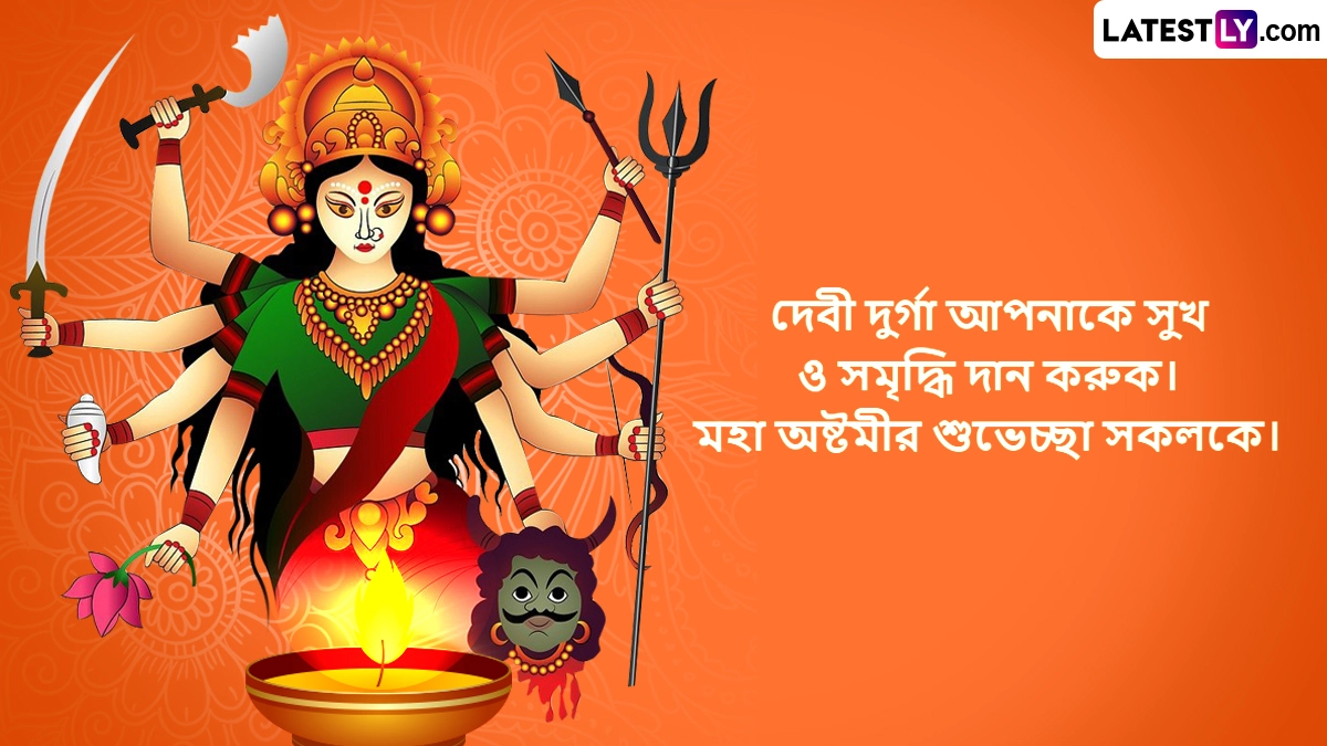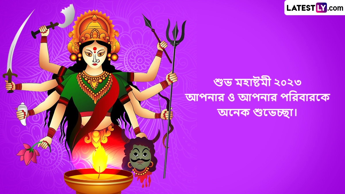 Maha Ashtami or Durga Ashtami is a significant day in the Hindu festival of Durga Puja, particularly celebrated in West Bengal and other parts of India with Bengali communities. "Ashtami" refers to the eighth day, and "Durga Ashtami" marks the eighth day of the festival, dedicated to the worship of Goddess Durga. As you observe Durga Ashtami 2023, here's a collection of Subho Durga Ashtami 2023 messages in Bengali, Maha Ashtami wishes in Bengali and Subho Durga Ashtami images, and HD wallpapers you can download and share with all your near and dear ones to wish them on this day. Maha Ashtami 2023 Wishes in Hindi: WhatsApp Stickers, Durga Ashtami Images, HD Wallpapers, Greetings and SMS.