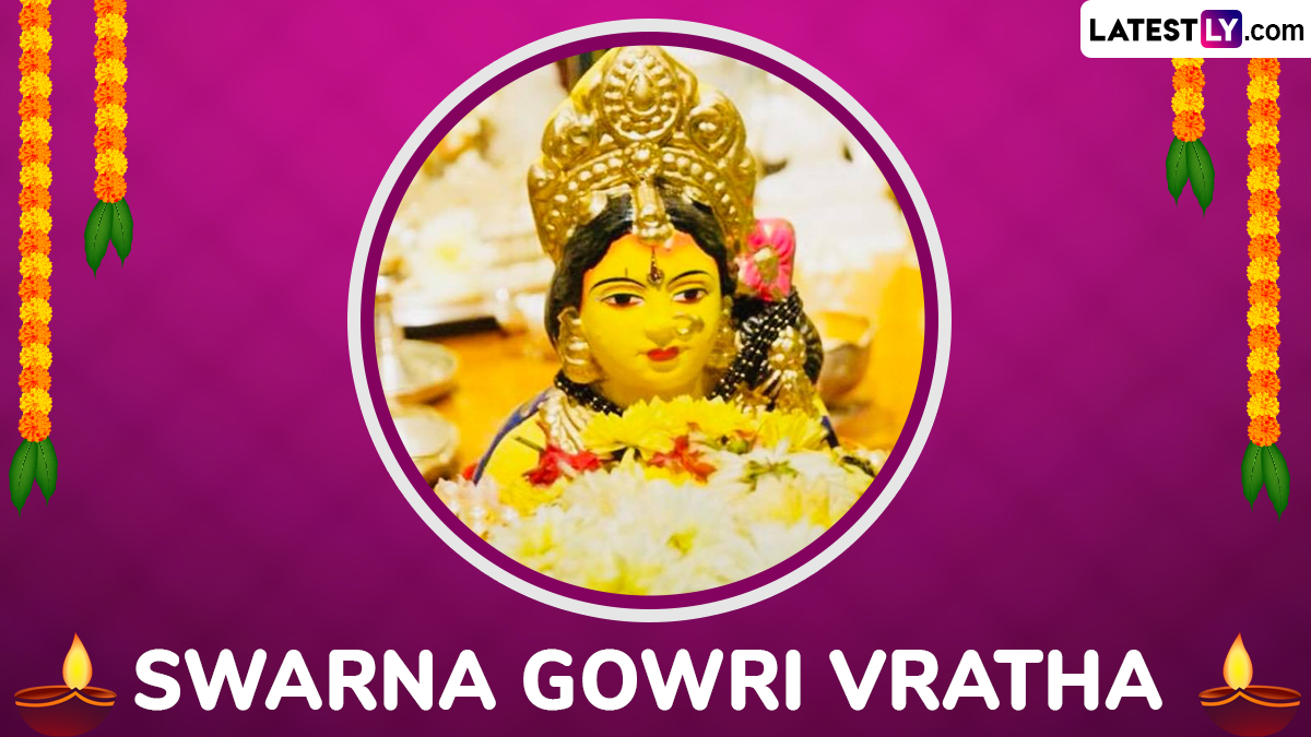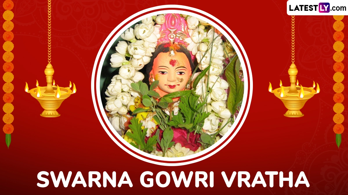Swarna Gowri Vratham, also called Swarna Gowri Vratha or Gowri Habba, is a Hindu occasion that is observed mainly in Karnataka, Andhra Pradesh, and parts of Tamil Nadu. The auspicious day is dedicated to Goddess Gowri, the consort of Lord Shiva, who symbolises strength, courage, prosperity, and marital bliss. The vrat is performed on the Tritiya tithi of the Bhadrapada month, a day before Ganesh Chaturthi. Swarna Gowri Vratham falls on Tuesday, August 26, 2025. As we celebrate Swarna Gowri Vratham 2025, we bring you Swarna Gowri Vratham wishes, Swarna Gowri Vratham 2025 greetings, Swarna Gowri Vratham HD wallpapers, and Swarna Gowri Vratham 2025 Facebook status which you can download and share with your family, friends and relatives. You can also download these Swarna Gowri Vratham wishes and messages and send to your loved ones as Happy Swarna Gowri Vratham 2025 wishes and greetings. Swarna Gowri Vratha 2025 Date: When is Swarna Gowri Vratham? Know Timings and Significance of the Day Dedicated to Goddess Parvati.