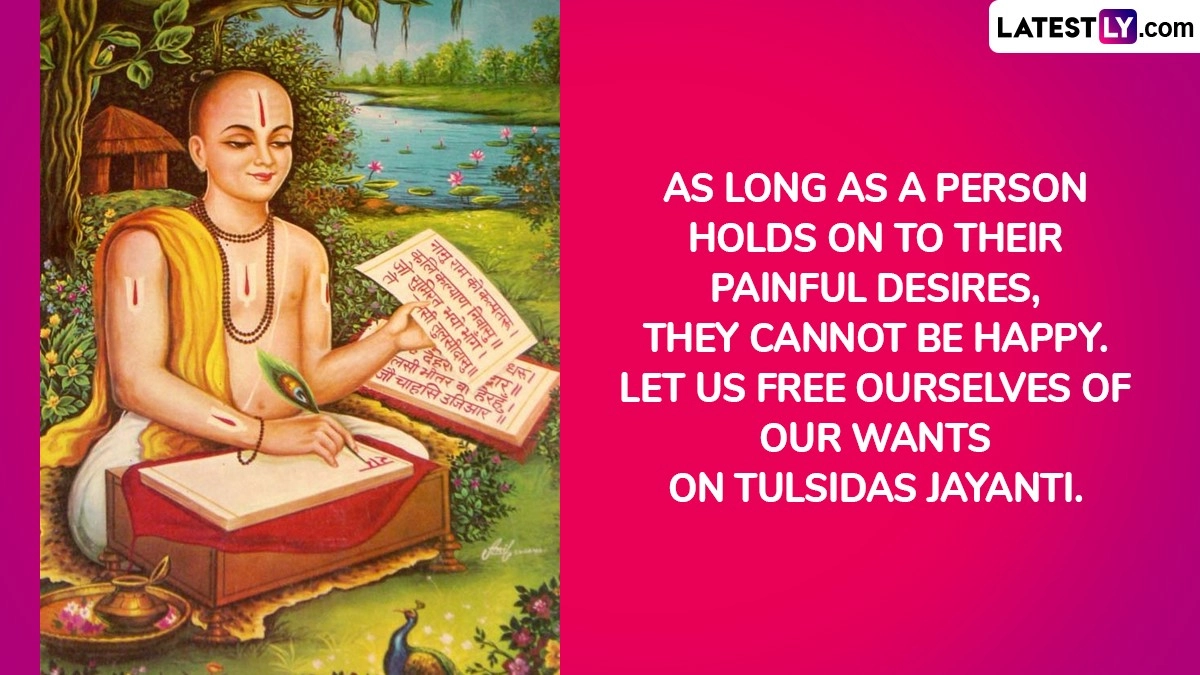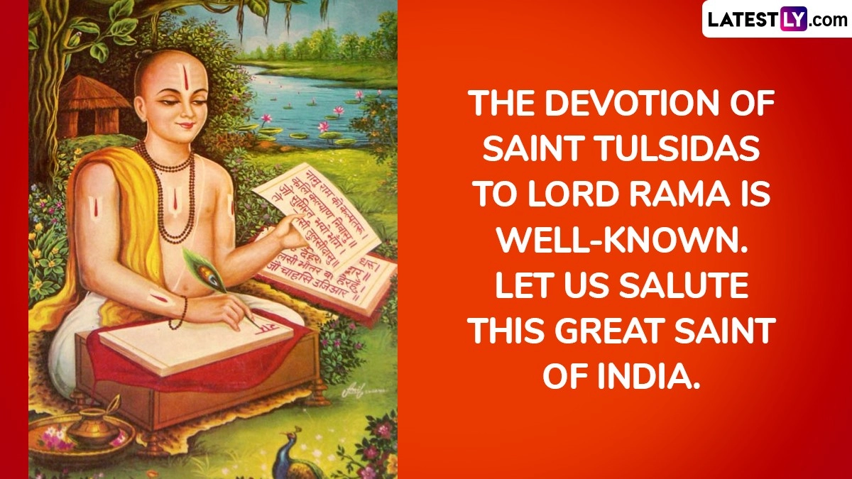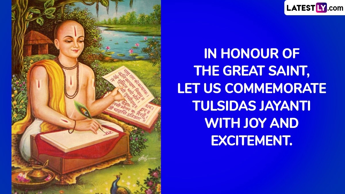 Tulsidas, born in the 16th century in the region now known as Uttar Pradesh, is celebrated for his deep devotion to Lord Rama. His Ramcharitmanas, a retelling of the Ramayana in the vernacular Awadhi language, made the epic more accessible to the common people, bridging the gap between high Sanskrit texts and everyday devotional practice. Tulsidas’ works are cherished for their poetic beauty, moral teachings, and spiritual depth, which continue to inspire devotees and scholars alike. On the auspicious day, we bring you Tulsidas Jayanti 2024 wishes, WhatsApp messages, HD images, quotes, wallpapers and greetings that you can download for free online and share with your close friends and family.