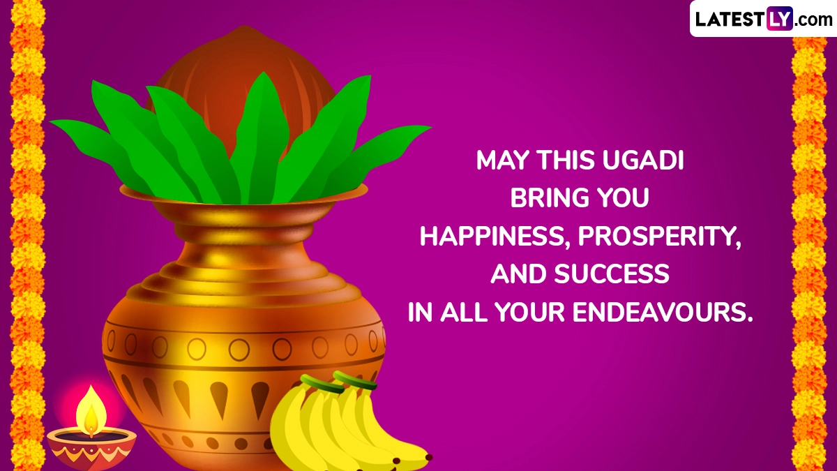 Preparations for Ugadi begin days in advance, with homes being thoroughly cleaned and decorated with fresh mango leaves and rangoli. On the day of the festival, devotees take a ritualistic oil bath and wear new clothes. Special prayers are offered to seek blessings for prosperity and happiness. A unique highlight of the celebration is the preparation of “Ugadi Pachadi,” a dish made with six ingredients—tamarind, jaggery, neem flowers, salt, chili, and raw mango—representing the six flavors of life: sweet, sour, bitter, salty, spicy, and tangy. As you observe Ugadi 2025, share these Ugadi 2025 wishes, greetings, Happy Yugadi images, HD wallpapers, WhatsApp messages and quotes.