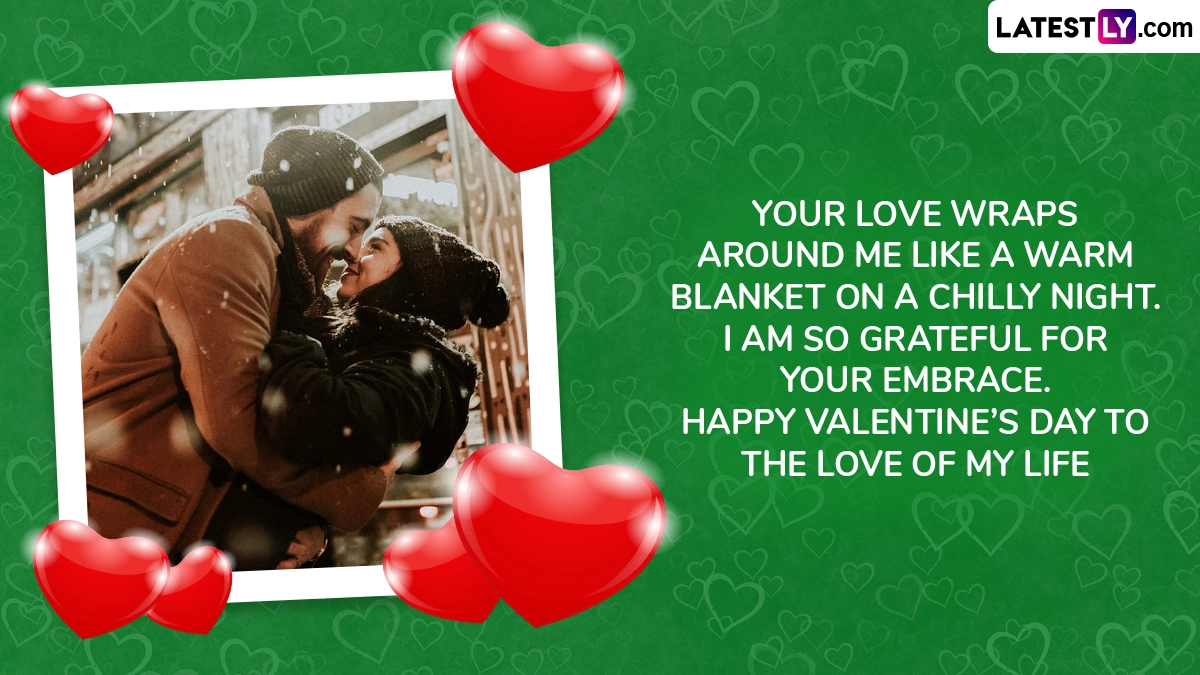 WhatsApp Message Reads:Ā Your Love Wraps Around Me Like a Warm Blanket on a Chilly Night. I Am So Grateful for Your Embrace. Happy Valentineās Day to the Love of My Life.