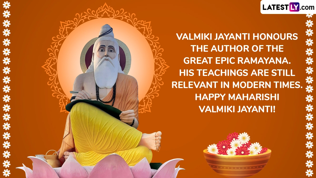 Saint Valmiki or Maharishi Valmiki is known to be the first poet of the Sanskrit language and is known to be the author of the epic Ramayana. On the occasion of Pragati Diwas or Valimiki Jayanti, people often revisit his work and teachings and raise awareness about the work. Maharishi Valmiki is also believed to be a major character in the Ramayana, as a monk who receives the banished queen Sita into his hermitage and acts as teacher to her twin sons, Lava and Kusha. The celebration of Valmiki Jayanti 2025 is particularly important for the Balmiki sect of India, who worship Maharishi Valmiki as the avatar of God. Lokkhi Puja 2025 Wishes and Kojagari Lakshmi Puja Greetings: Share Bengali Lakshmi Puja Wishes, Subho Lokkhi Pujo Messages, Goddess Lakshmi HD Images and Wallpapers on Sharad Purnima.