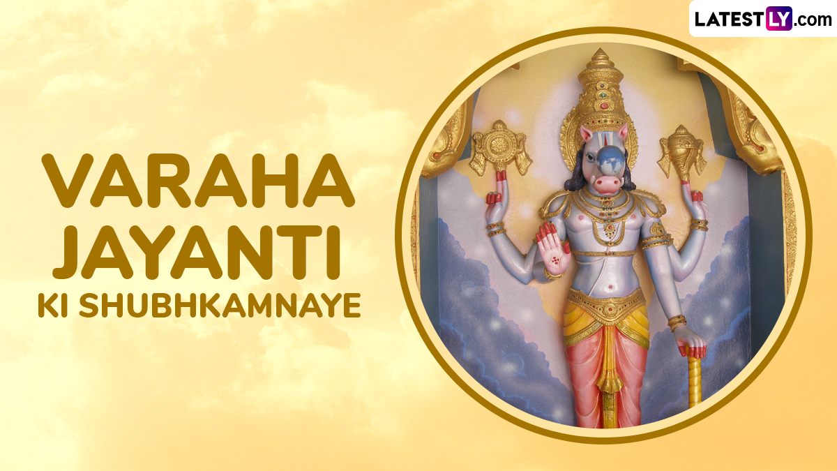 Varaha Jayanti 2025 will be observed on Monday, August 25.ย It marks the birth of Lord Vishnu's third incarnation, Varaha, the boar-headed deity. According to Hindu mythology, Lord Vishnu took the form of Varaha to rescue the Earth goddess Bhudevi from the depths of the cosmic ocean, where she had been submerged by the demon Hiranyaksha. This form of Vishnu symbolises strength, courage, and divine intervention in times of cosmic imbalance. Varaha Jayanti is observed during the Shukla Paksha of the Bhadrapada month (AugustโSeptember), especially celebrated in parts of South India and some North Indian states with deep devotion and Vedic rituals.ย As you observe Varaha Jayanti 2025, we at LatestLY have compiled a collection of messages that you can download and share with all your loved ones to wish them on this day with WhatsApp stickers, images, HD wallpapers and SMS.ย Varaha Jayanti 2025 Date and Time: Know Rituals, Celebrations and Significance of the Birth Anniversary of Lord Vishnuโs Third Incarnation.