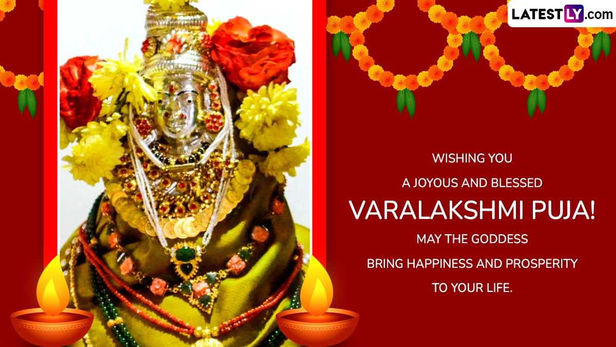 Varalakshmi Vratham is a revered Hindu festival celebrated primarily in South India, dedicated to Goddess Lakshmi, the deity of wealth, prosperity, and abundance. Observed on the Friday before the full moon day in the month of Shravana (July-August), this festival is especially significant for married women who seek blessings for their families, health, and overall well-being. The term "Varalakshmi" translates to "one who grants boons," reflecting the goddess’s role in bestowing blessings and fulfilling devotees' wishes. As you observe Varalakshmi Vratam 2024, we at LatestLY have compiled a collection of Varalakshmi Vratham 2024 messages, Happy Varalakshmi Vratham wishes, Varalakshmi Vratham greetings, images, quotes, HD wallpapers and WhatsApp stickers.