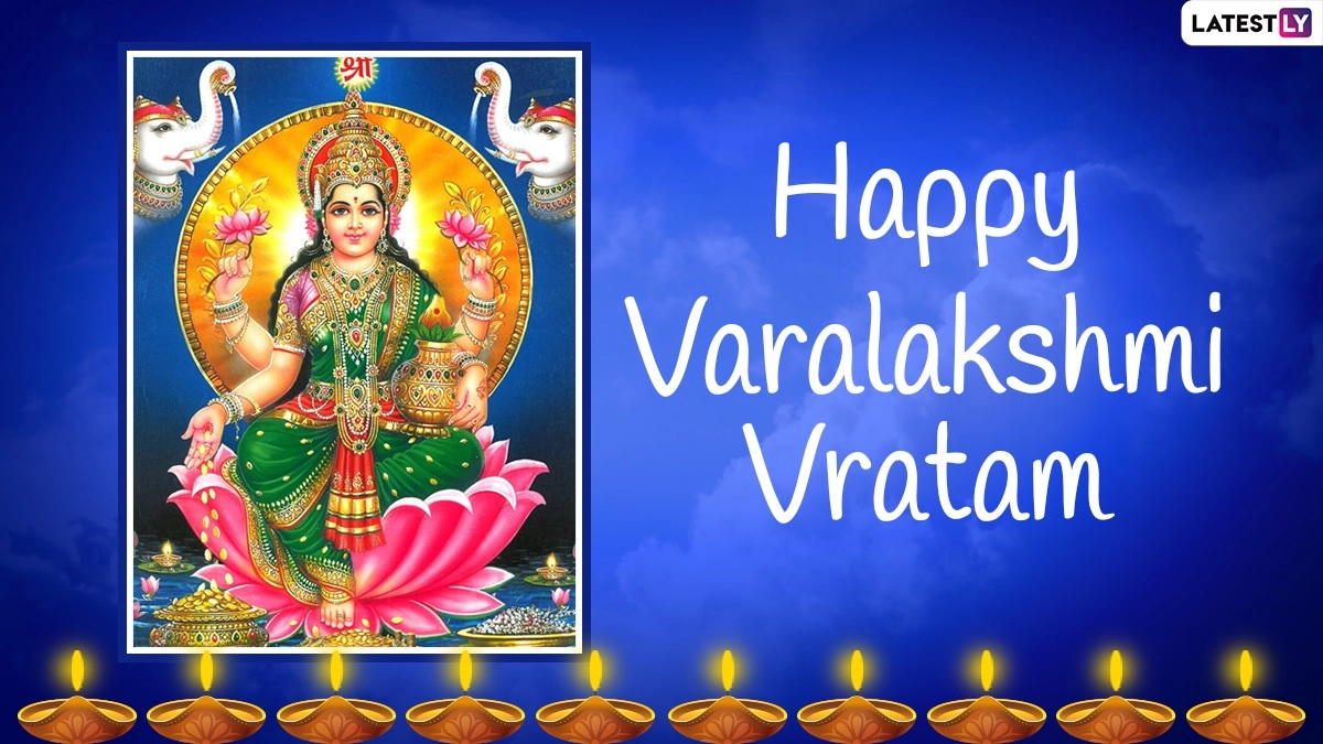 Varalakshmi Vratham 2025 will be marked on August 8. This annual celebration is marked by people across South India, who observe a stringent day-long fast and seek the blessings of Goddess Varalakshmi, Lord Vishnu’s consort. Every year, on the occasion of Varalakshmi Nombu, people perform a stringent Puja that helps them to seek the blessings of the almighty for a healthy and prosperous life with their families. Sharing Happy Varalakshmi Vratham 2025 wishes and messages, Varalakshmi Nombu 2025 greetings, Varalakshmi Puja images and wallpapers, Happy Varalakshmi Nombu WhatsApp stickers, and Varalakshmi Vratham Facebook status pictures are all an integral part of this celebration. Varamahalakshmi Pooja Timings 2025 on August 8: How Is Varalakshmi Nombu Celebrated? Know Puja Rituals and Significance of the Auspicious Hindu Festival.